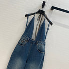 Prada 25 Halter Ntube Top Suspender Jumpsuit Blue Cotton