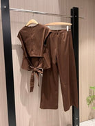 Prada Bow Tie T-shirt and Trouser Set Brown and Gray Wool Polyester