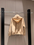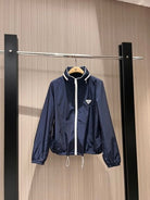 Prada Stand-up Collar Hooded Jacket Dark Blue and Khaki nylon