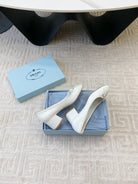 BALLERINA PUMPS WITH TRIANGLE LOGO AND BOW IN WHITE CALFSKIN