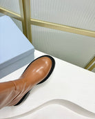 KNEE BOOTS WITH TRIANGLE LOGO IN CAMEL CALFSKIN