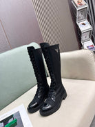 LACE-UP KNEE BOOTS IN BLACK DENIM AND SHEEPSKIN LINING