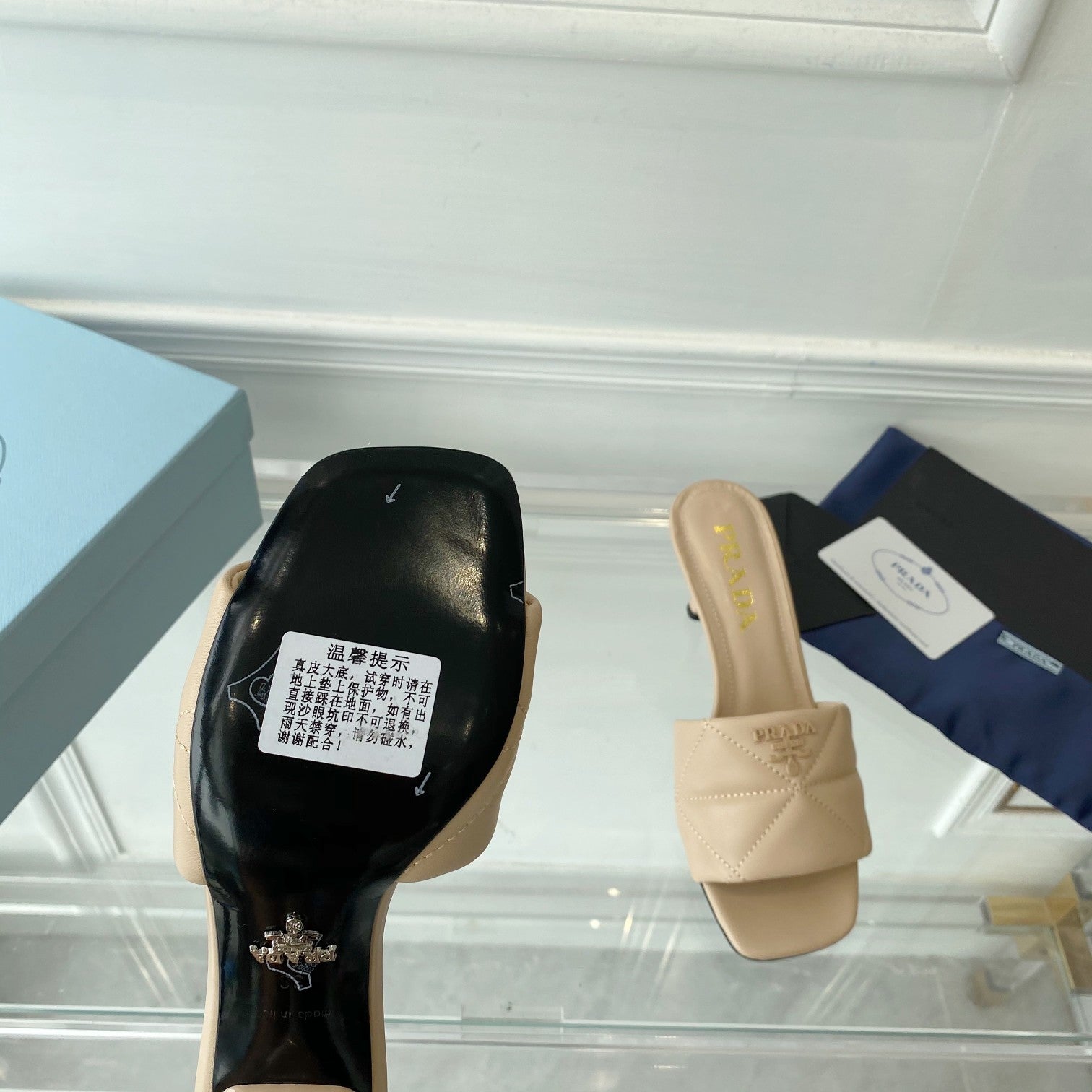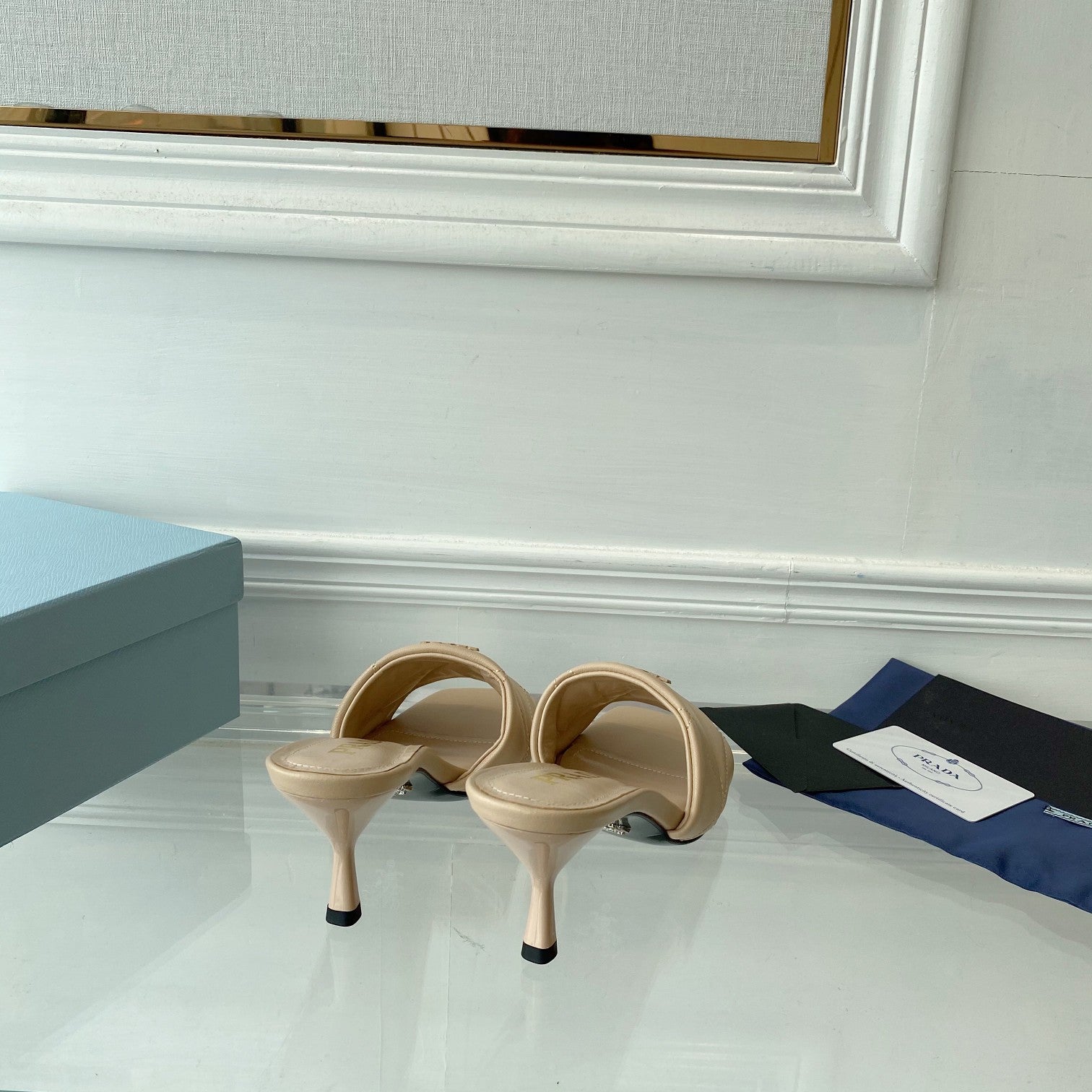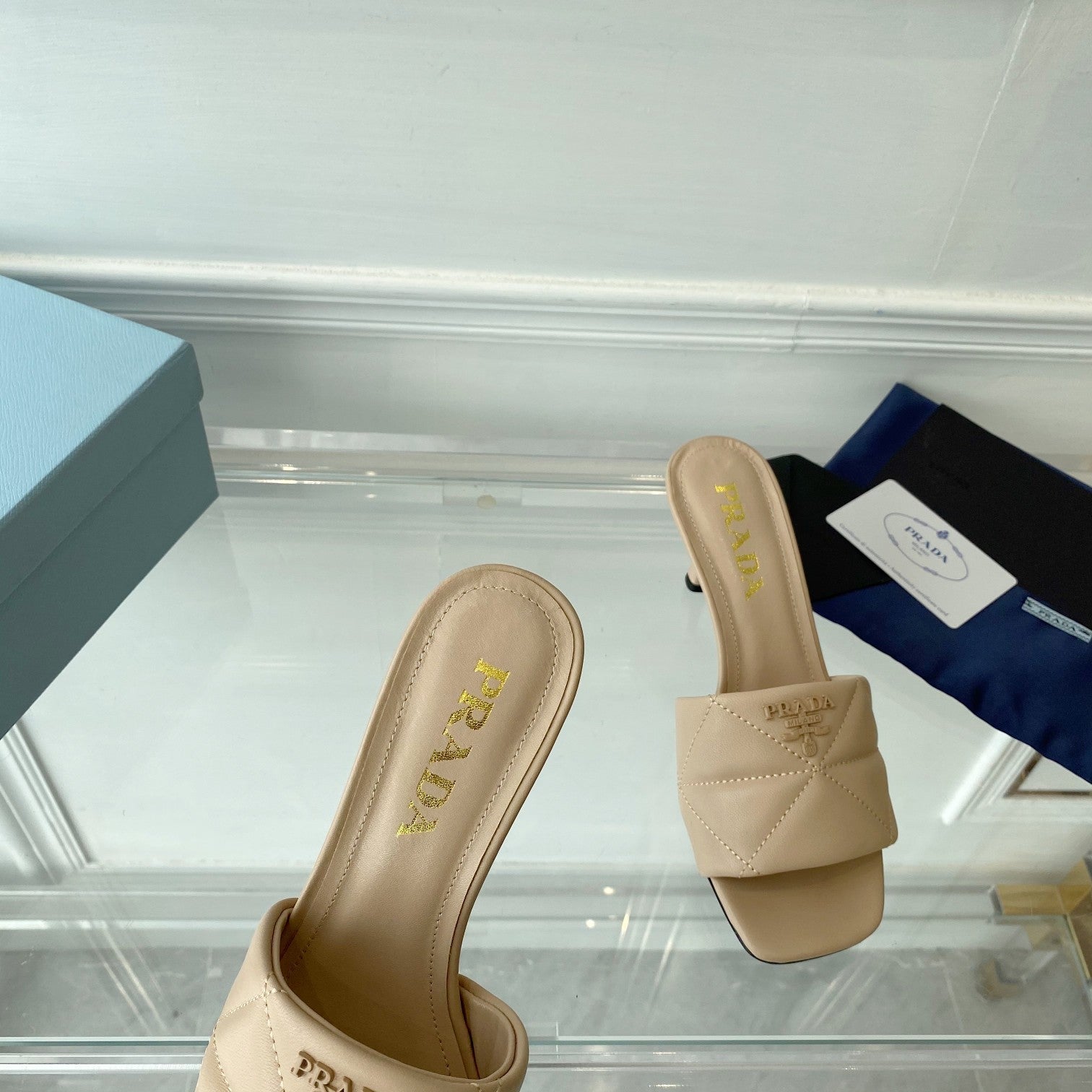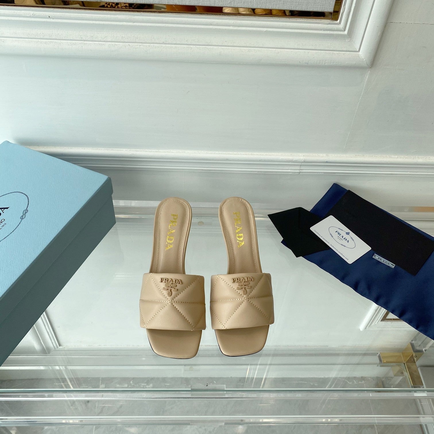 Pra Heeled Sandal 65 Pointed Sole Quilted Beige Leather