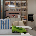 TRIANGLE LOGO PUMPS IN APPLE GREEN SATIN