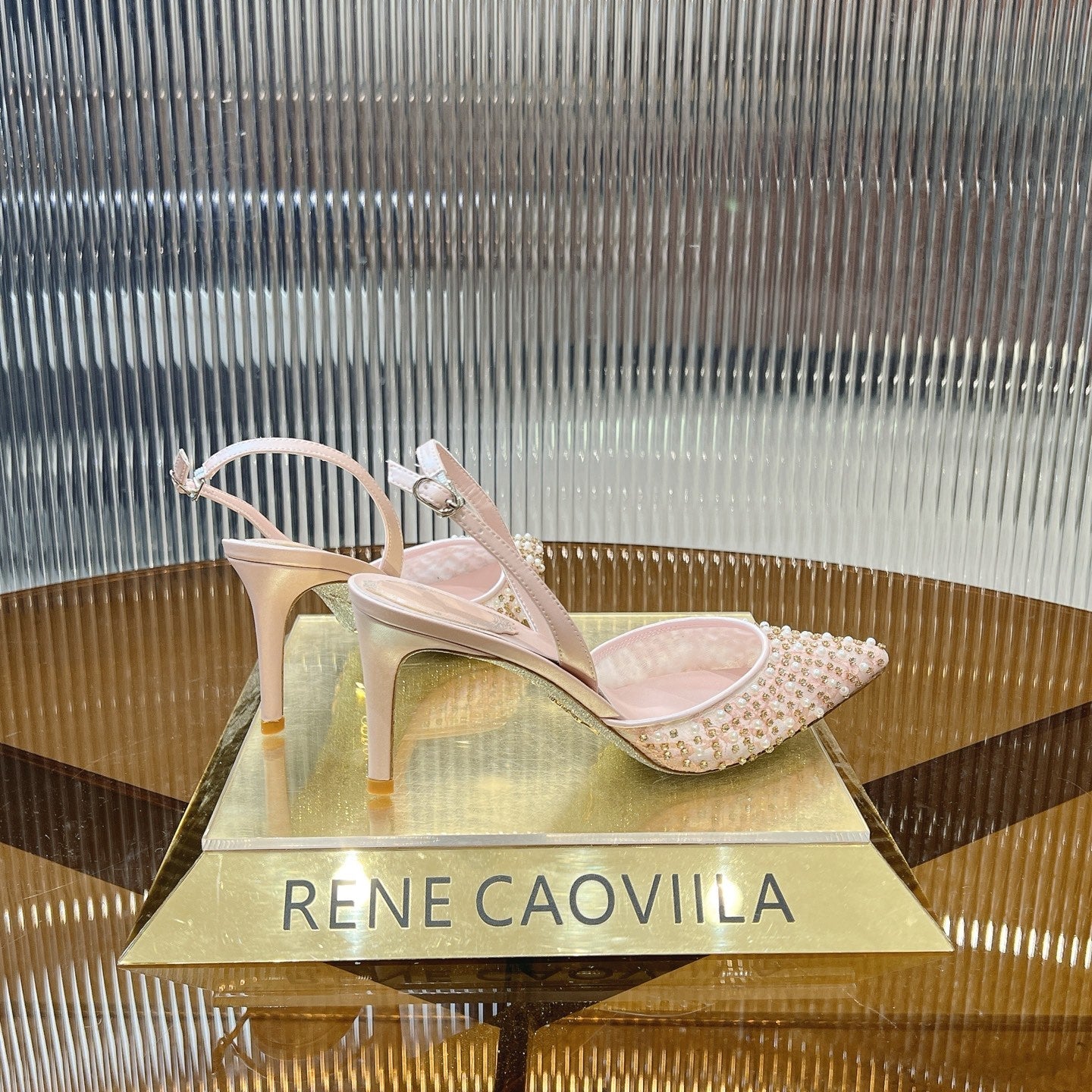 RC Scarpin Shoe 7.5cm Pink Rhinestone Sheepskin 281988