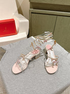 RC 25 Snake-Shaped Add Bow High Heeled Pink Silk Rhinestones 268070