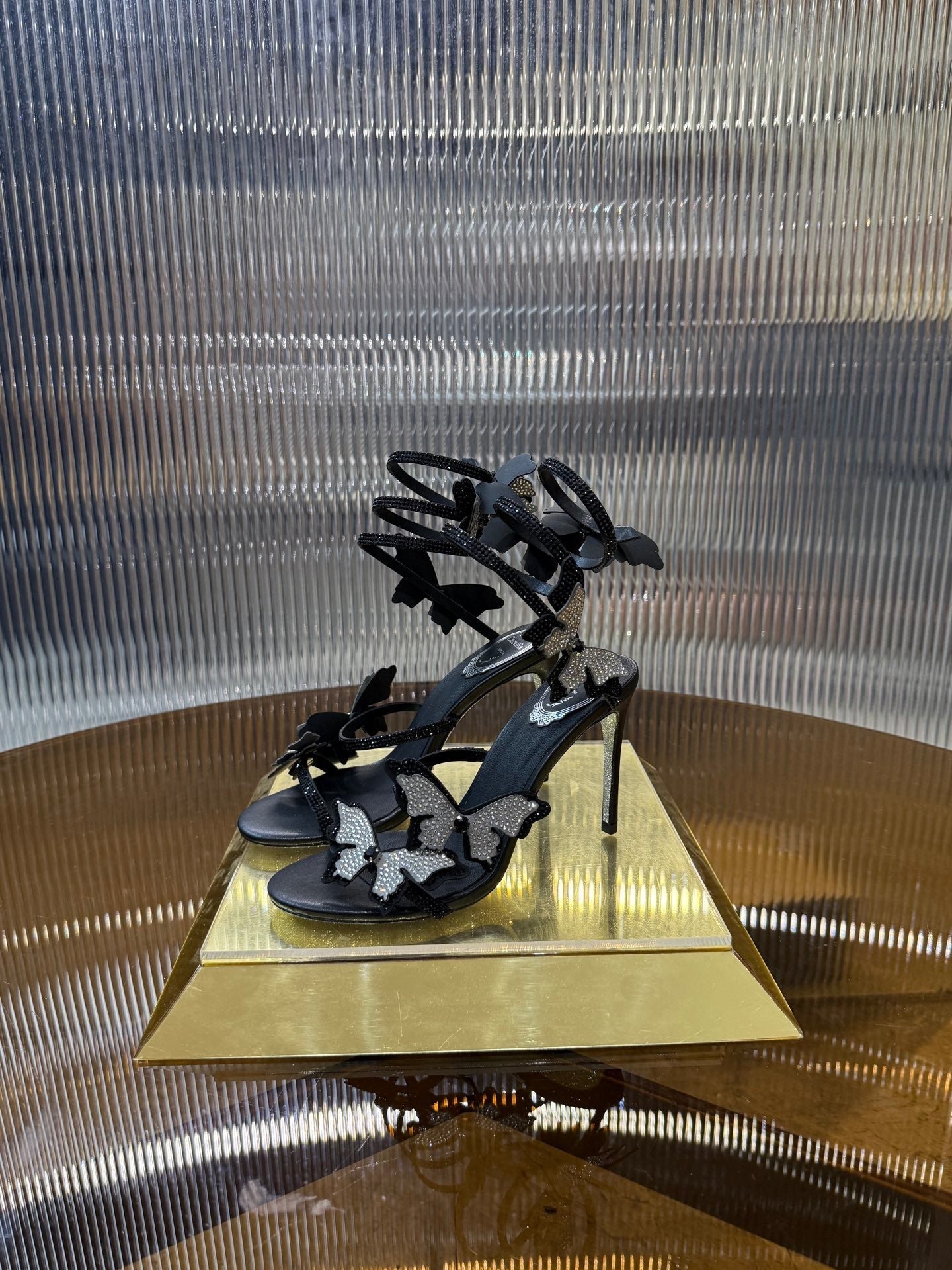 RC 25C Stiletto Sandals Black Silk Rhinestone 275776