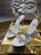 RC 25C Stiletto Sandals White Silk Rhinestone 275775