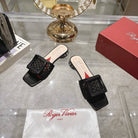 Viv 25 Hollow Square Buckle Slippers Black Weaving Leather 262999