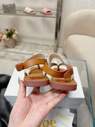 CHLOÉ THONG SANDALS IN CINNAMON BROWN CALFSKIN AND WHITE CANVAS