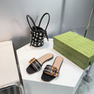GG BAMBOO BUCKLE FLAT SANDALS BLACK