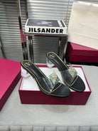Heeled Sandals 6cm with Crystal Square Buckle Black