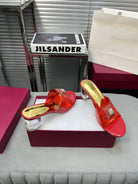 Heeled Sandals 6cm with Crystal Square Buckle Gold and Red