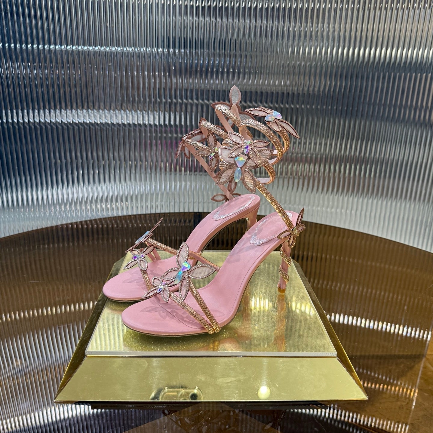 RC 25C Butterfly Sandals Pink Silk Swarovski Crystal Diamond 339484