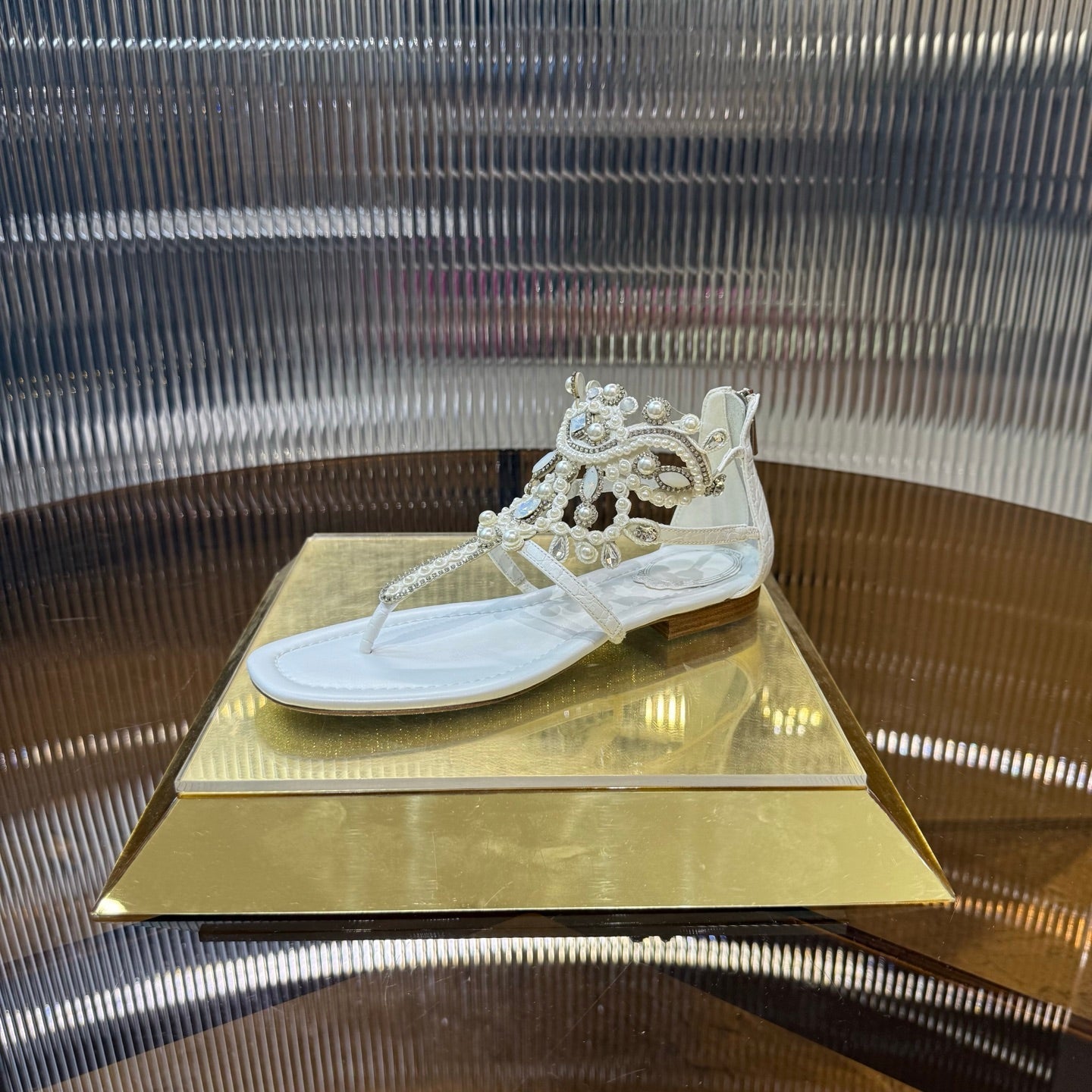 RC 25C Thong Diamond Sandals Pearl White Sheepskin Rhinestone 339504