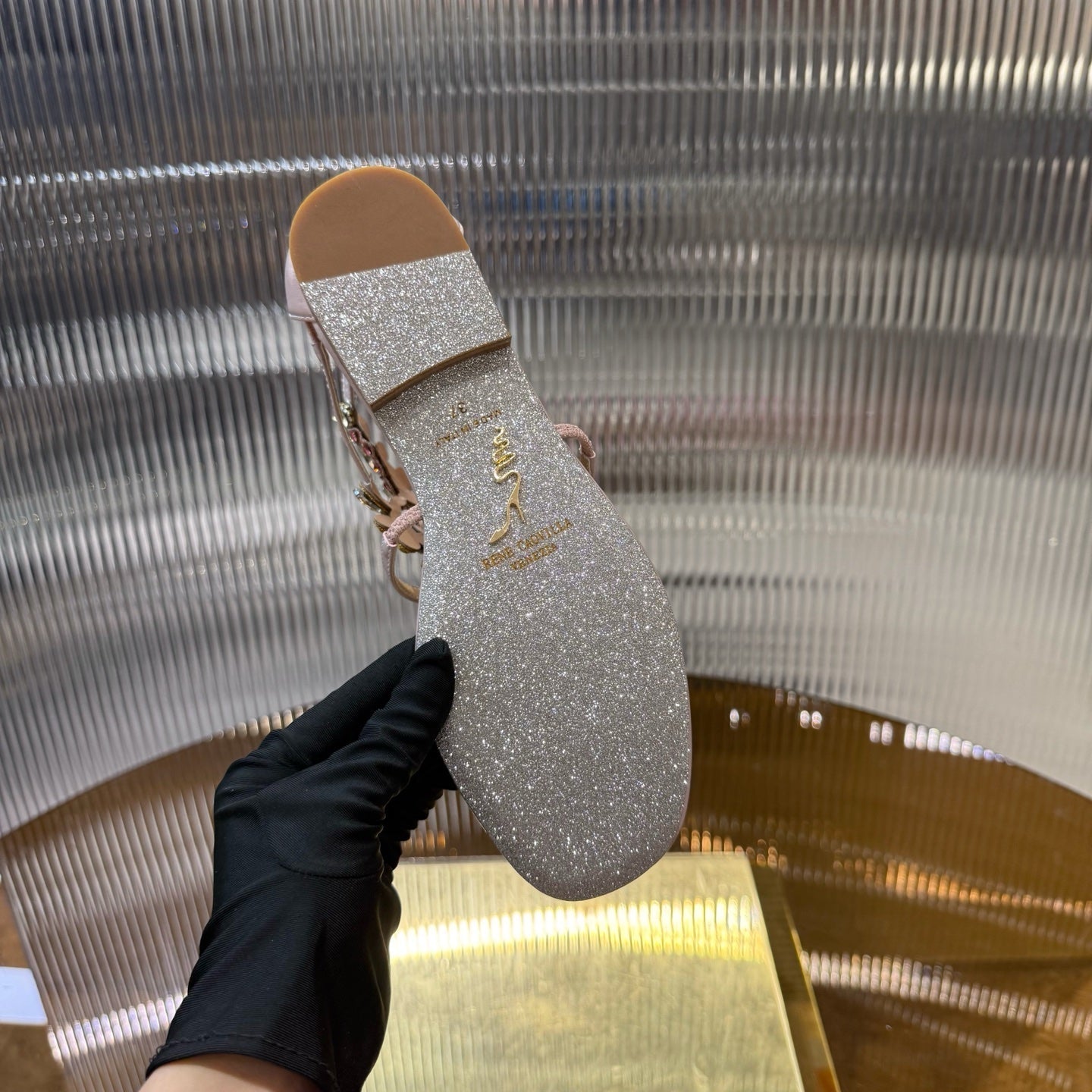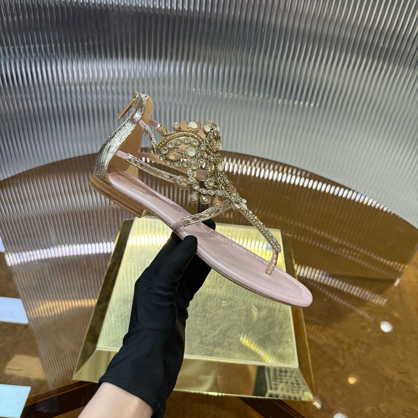 RC 25C Thong Diamond Sandals Pink Gold Sheepskin Rhinestone 339505