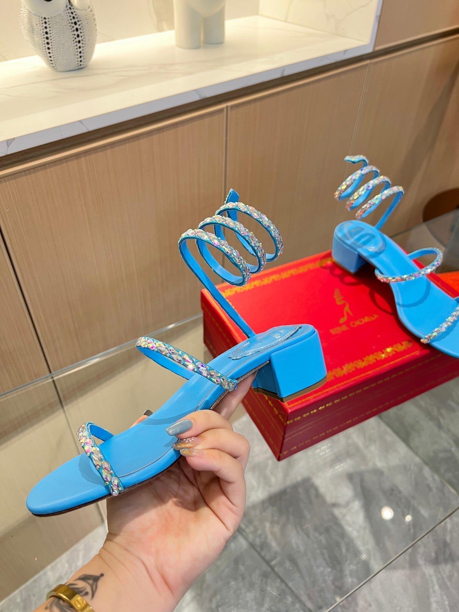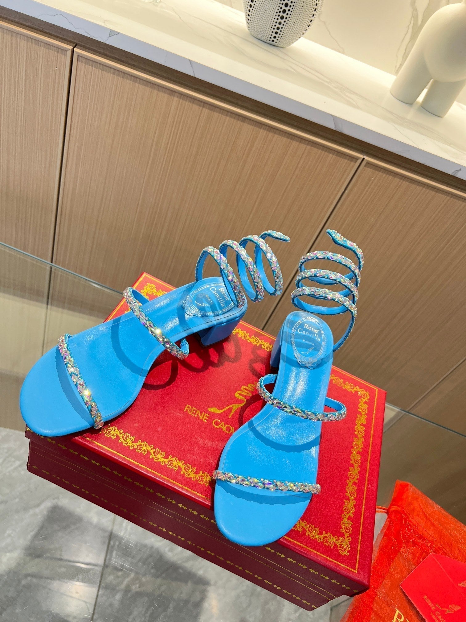 RC Diamond Sandals Blue Silk Creole Glass Diamond 341986