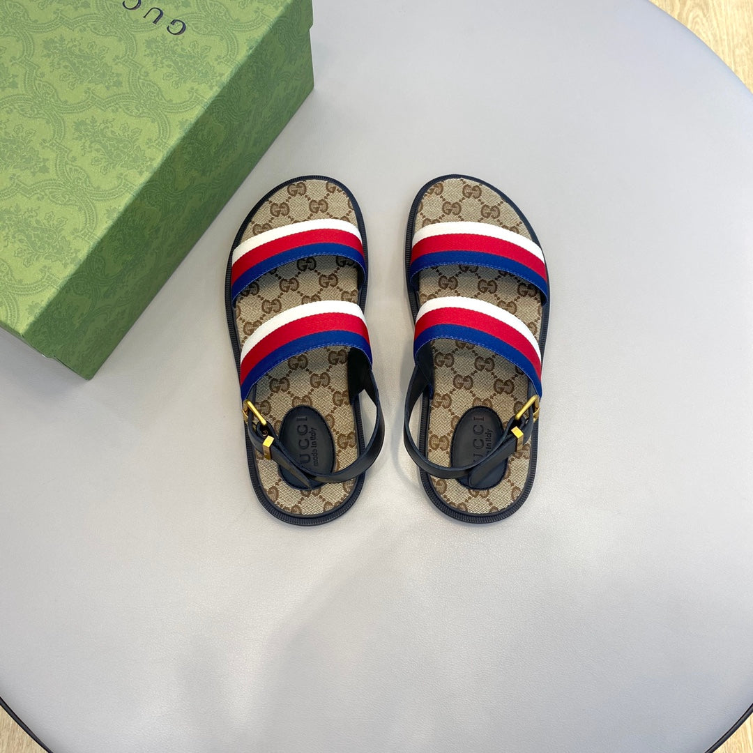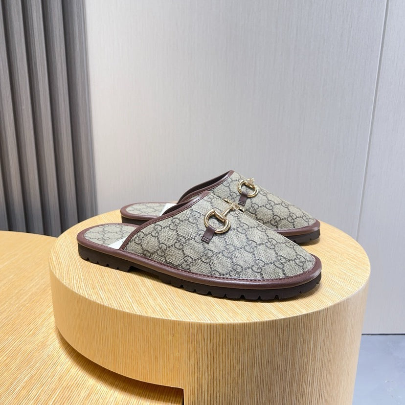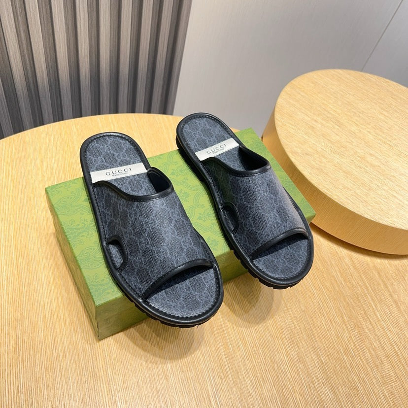 GG Men's Slide Black Brown Canvas Cowhide 542946