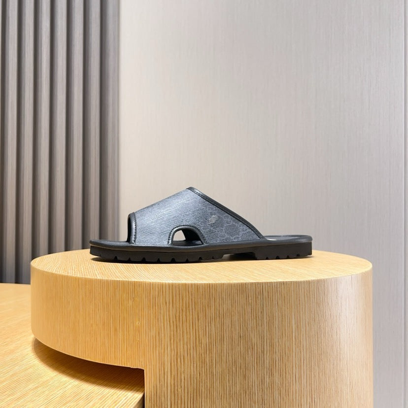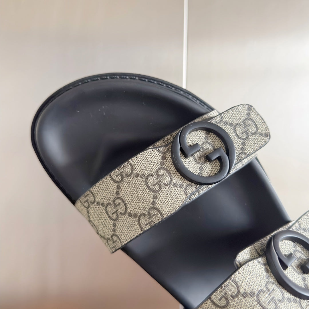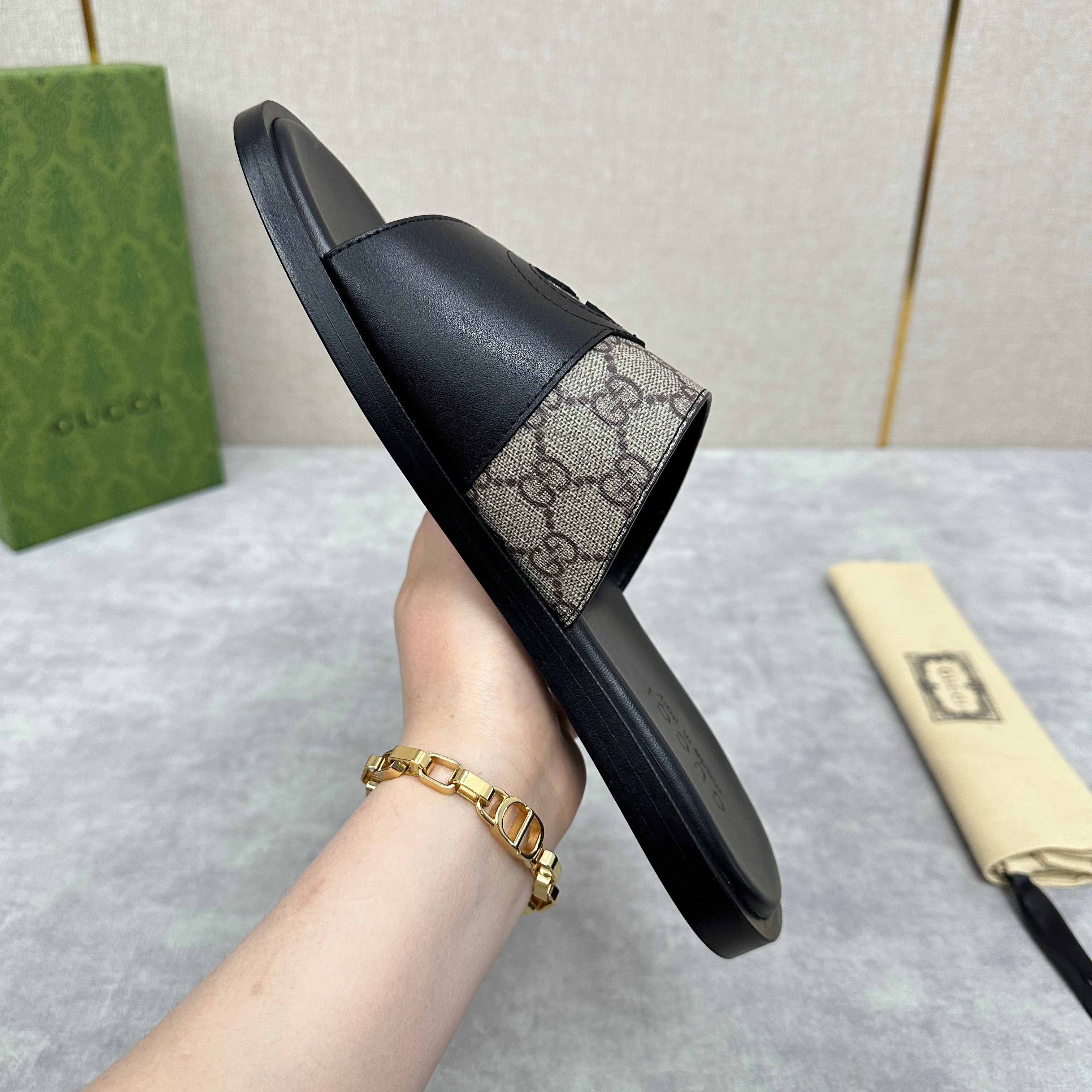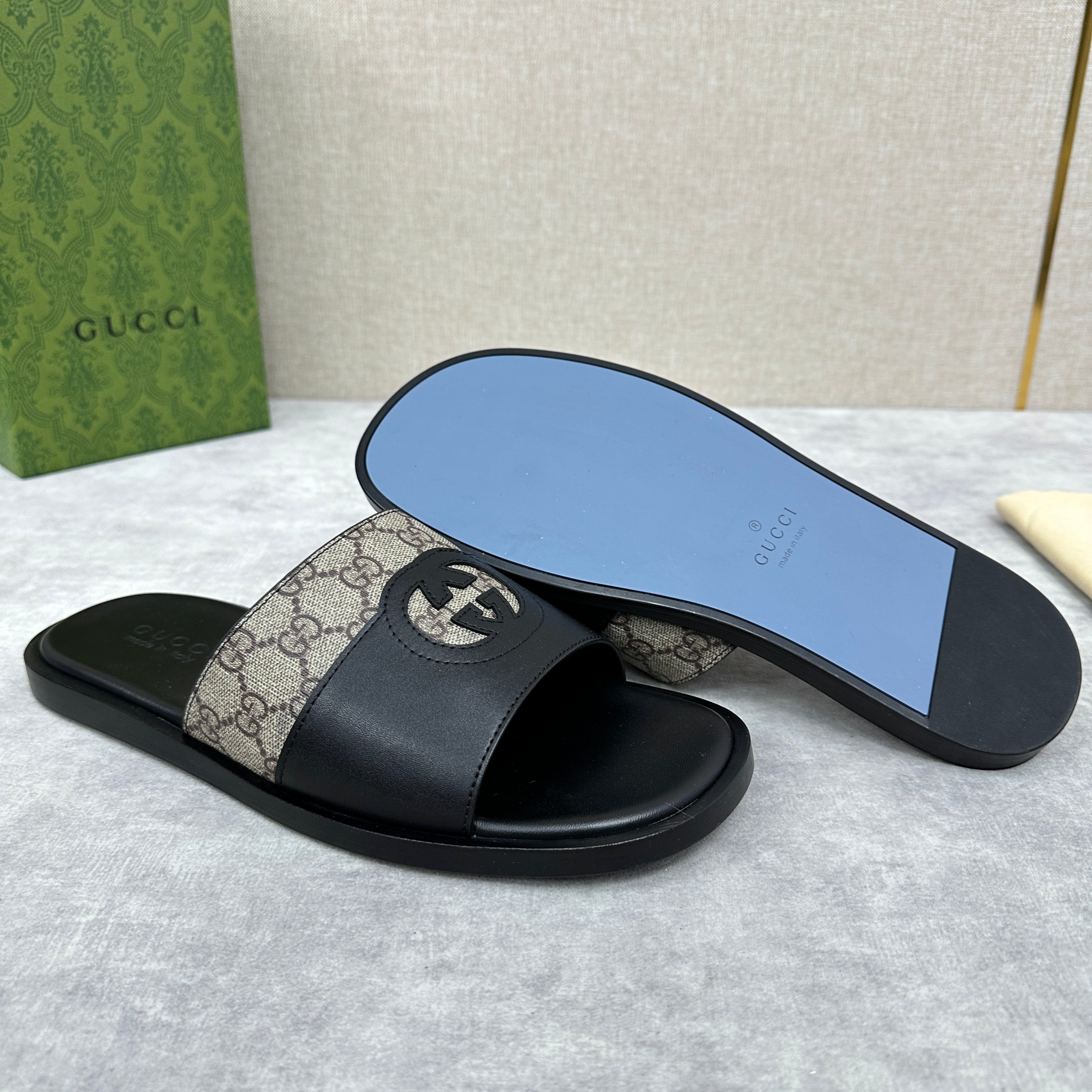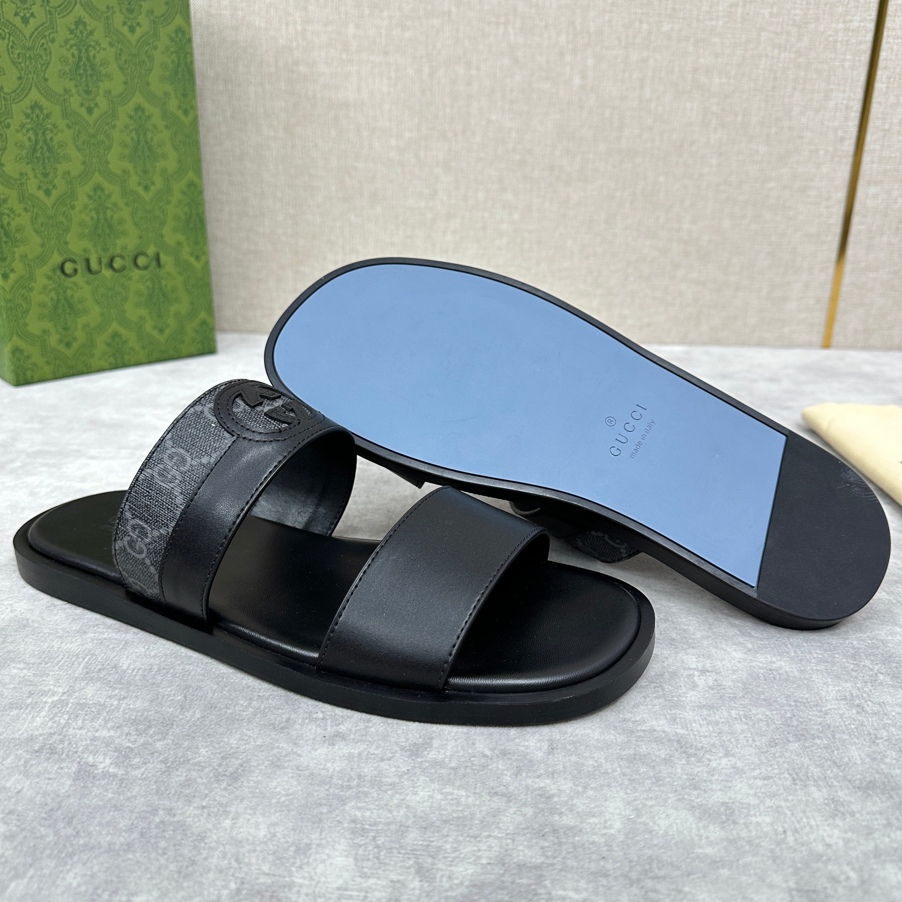 GG Men's Interlocking G Slides Black Cowhide 547642