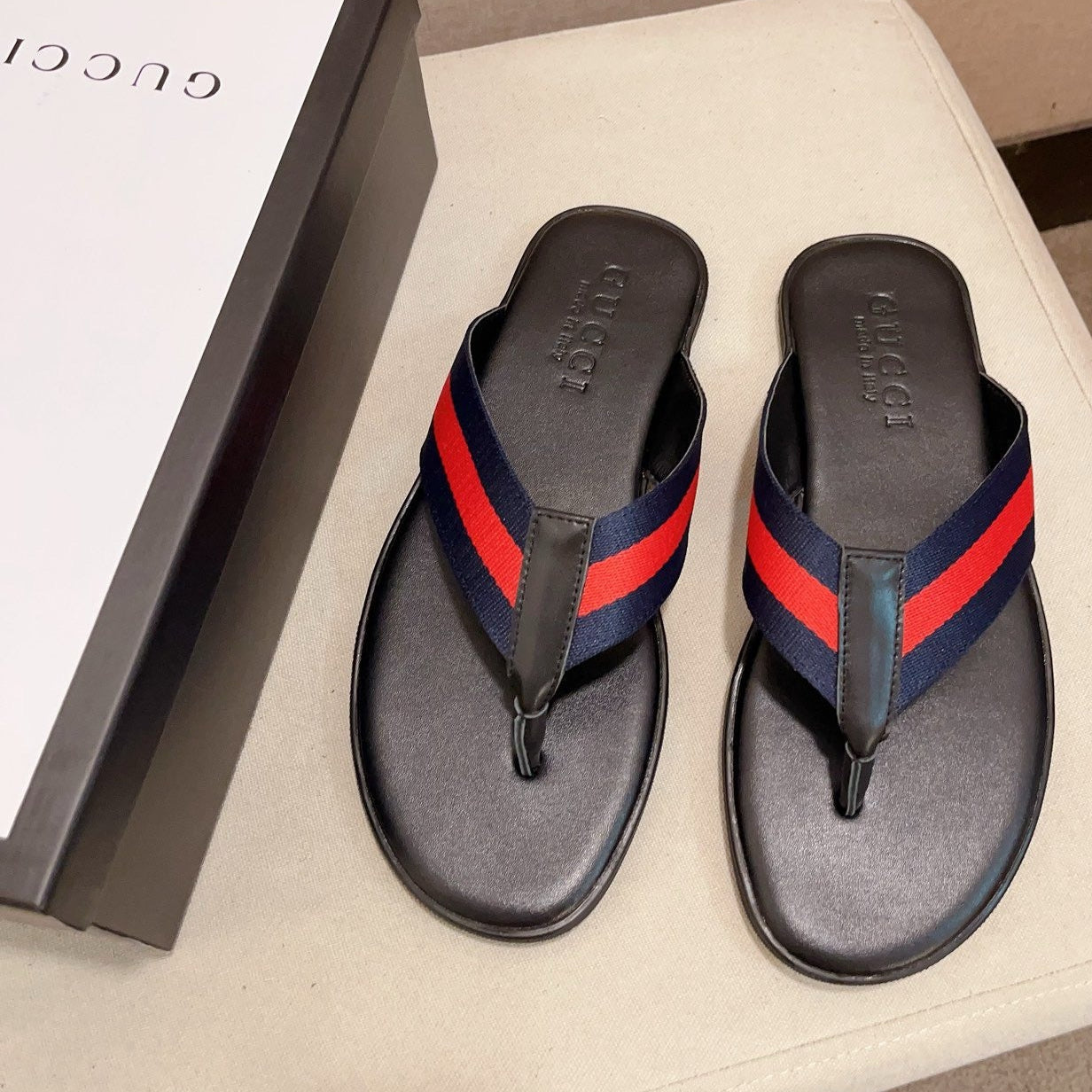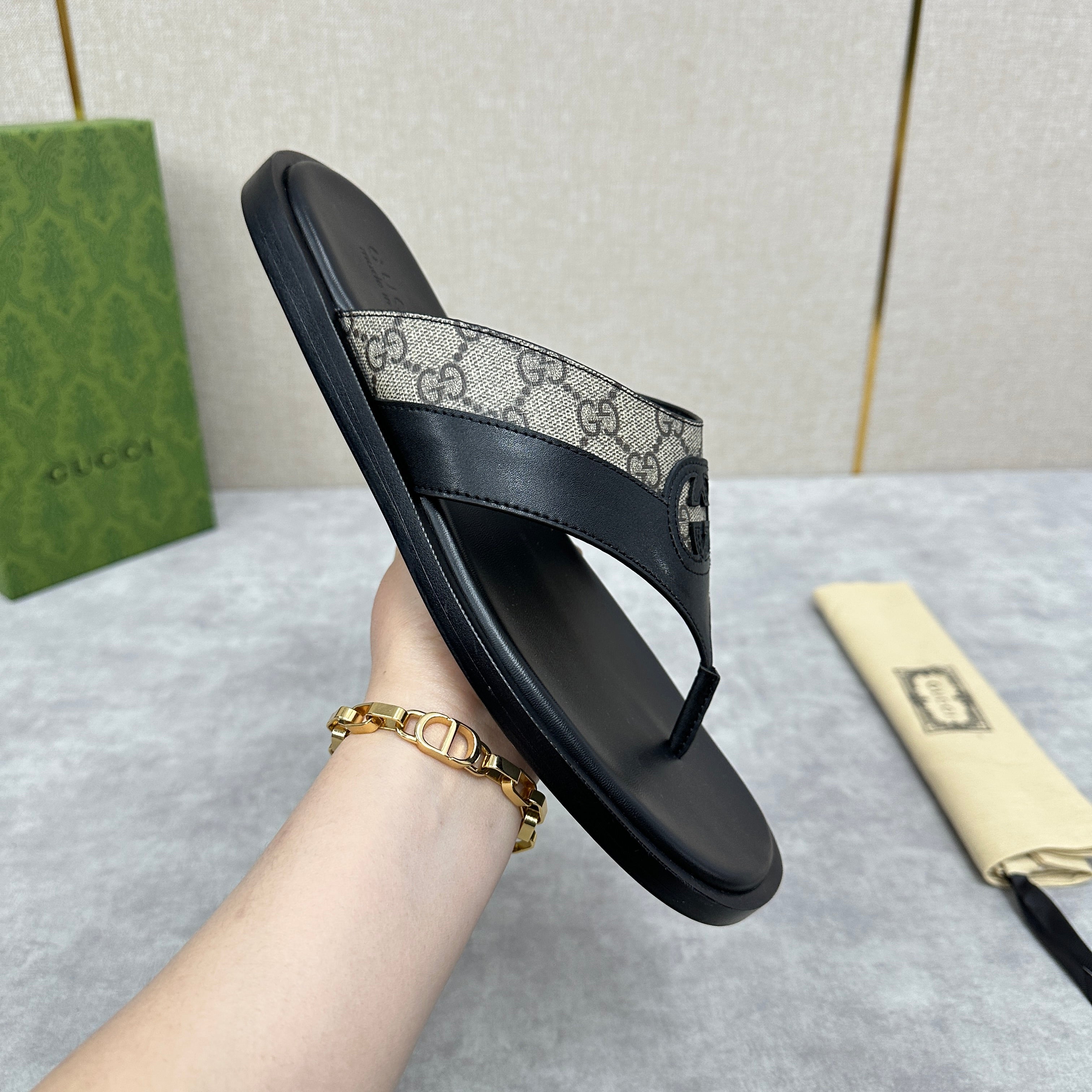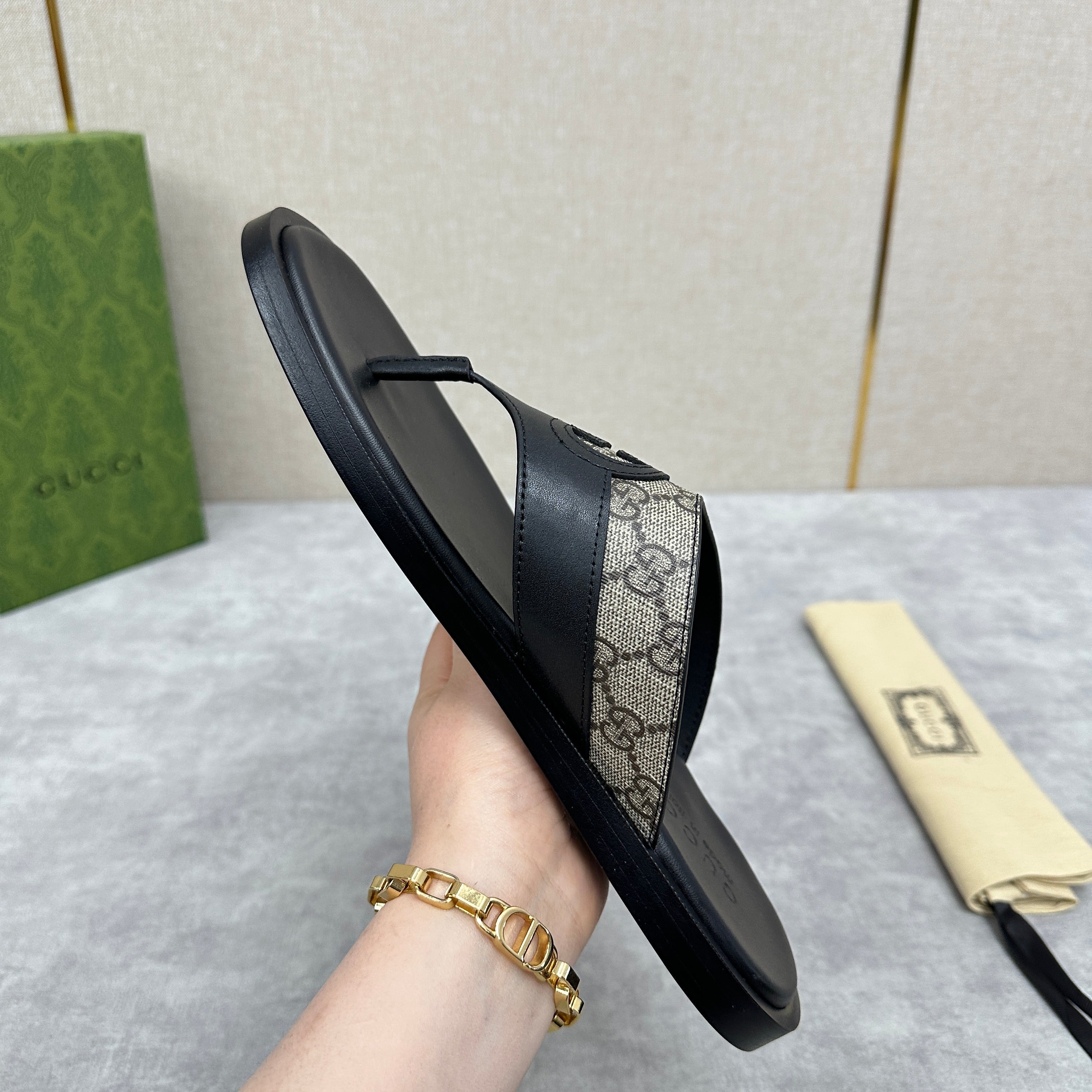 GG Men's Thong Sandals Black Canvas Cowhide 542951