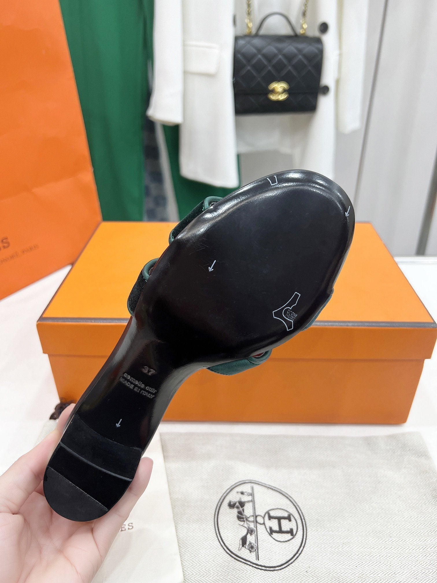 - Material: Sandal in velvet with iconic "H" cut-out.