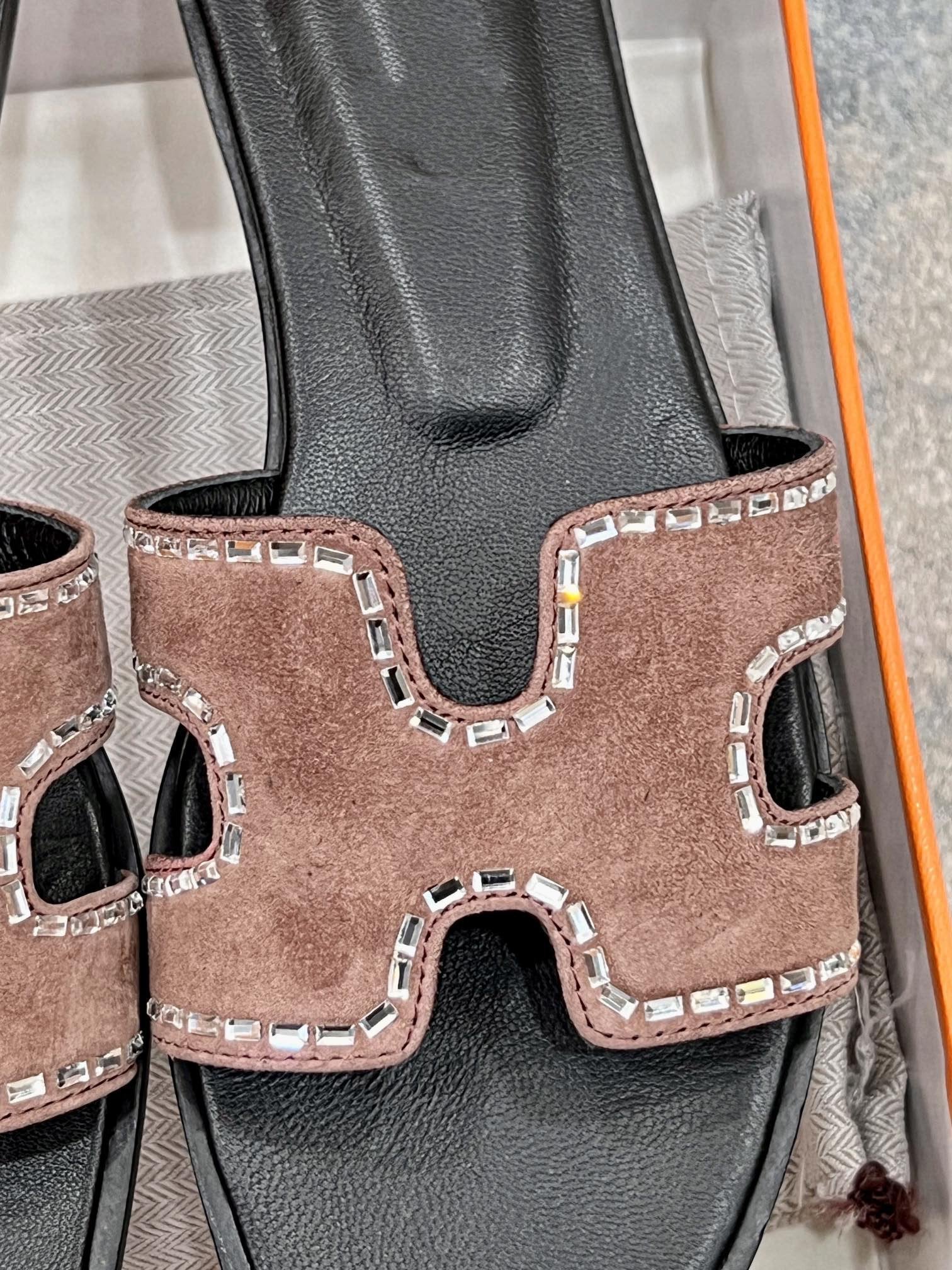 - Material: Sandal in calfskin with iconic "H" cut-out.