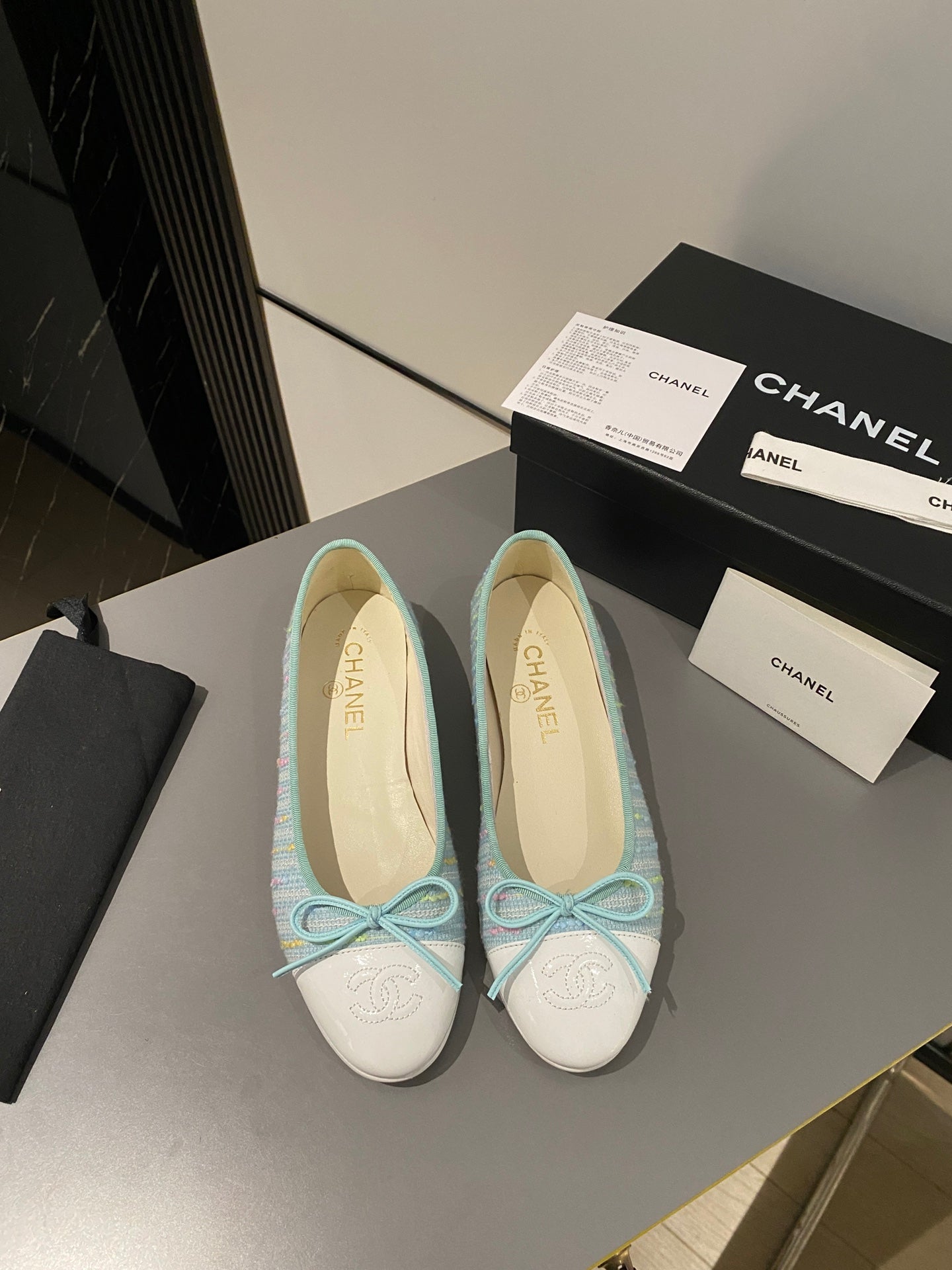 ballet flat cloud blue embroidered fabric white calfskin
