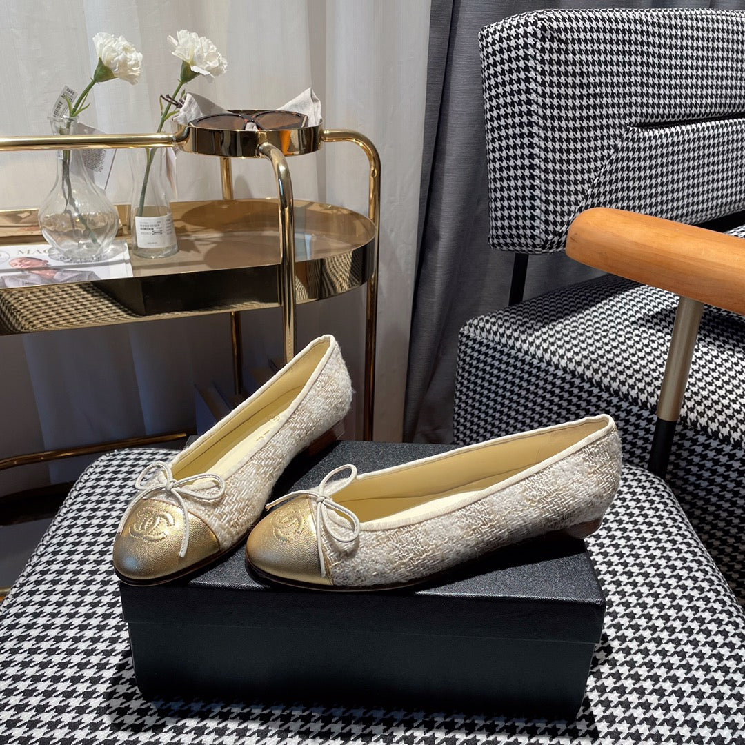 ballet flat gold white tweed gold metalic calfskin