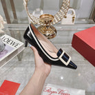 Belle Viv Metal Buckle Pumps 65 Black White Patent Leather