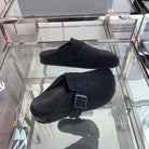 BIRKENSTOCK CLOG ATTACHED RHINESTONES IN BLACK CALFSKIN