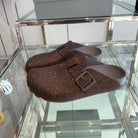 BIRKENSTOCK CLOG ATTACHED RHINESTONES IN BROWN CALFSKIN