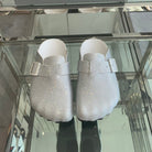 BIRKENSTOCK CLOG ATTACHED RHINESTONES IN WHITE CALFSKIN