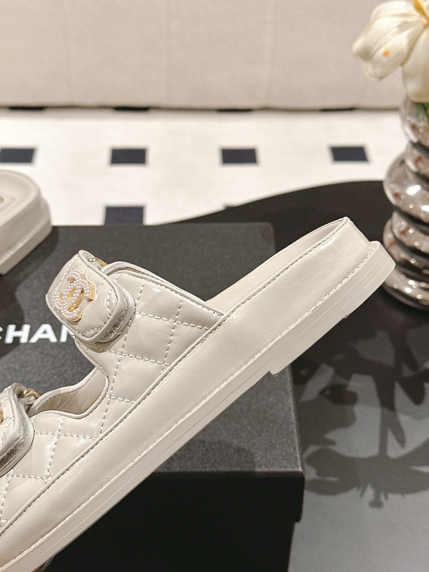 CC 25 Dad Sandal Mule Beige Gray Patent Leather 237584