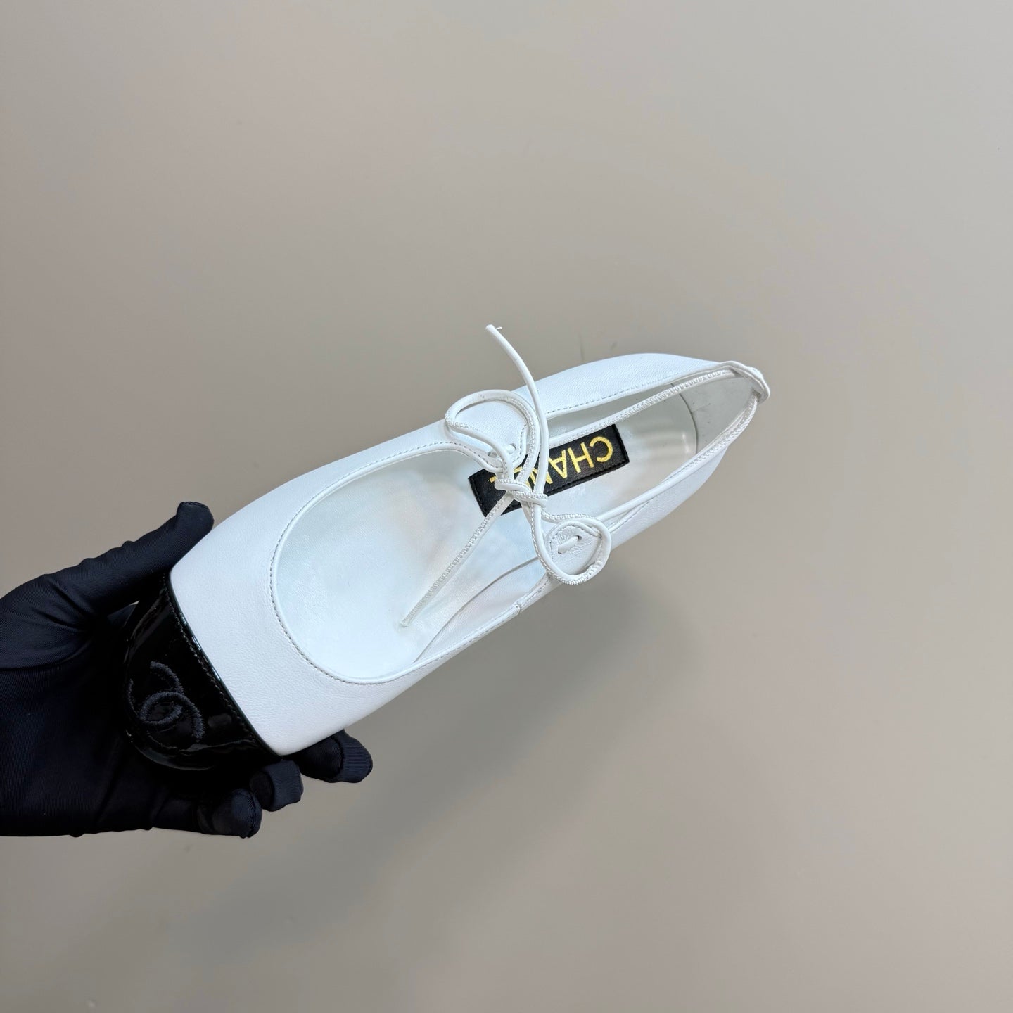 CC 25 Mary Jane Flat White Leather with Patent Leather 239411