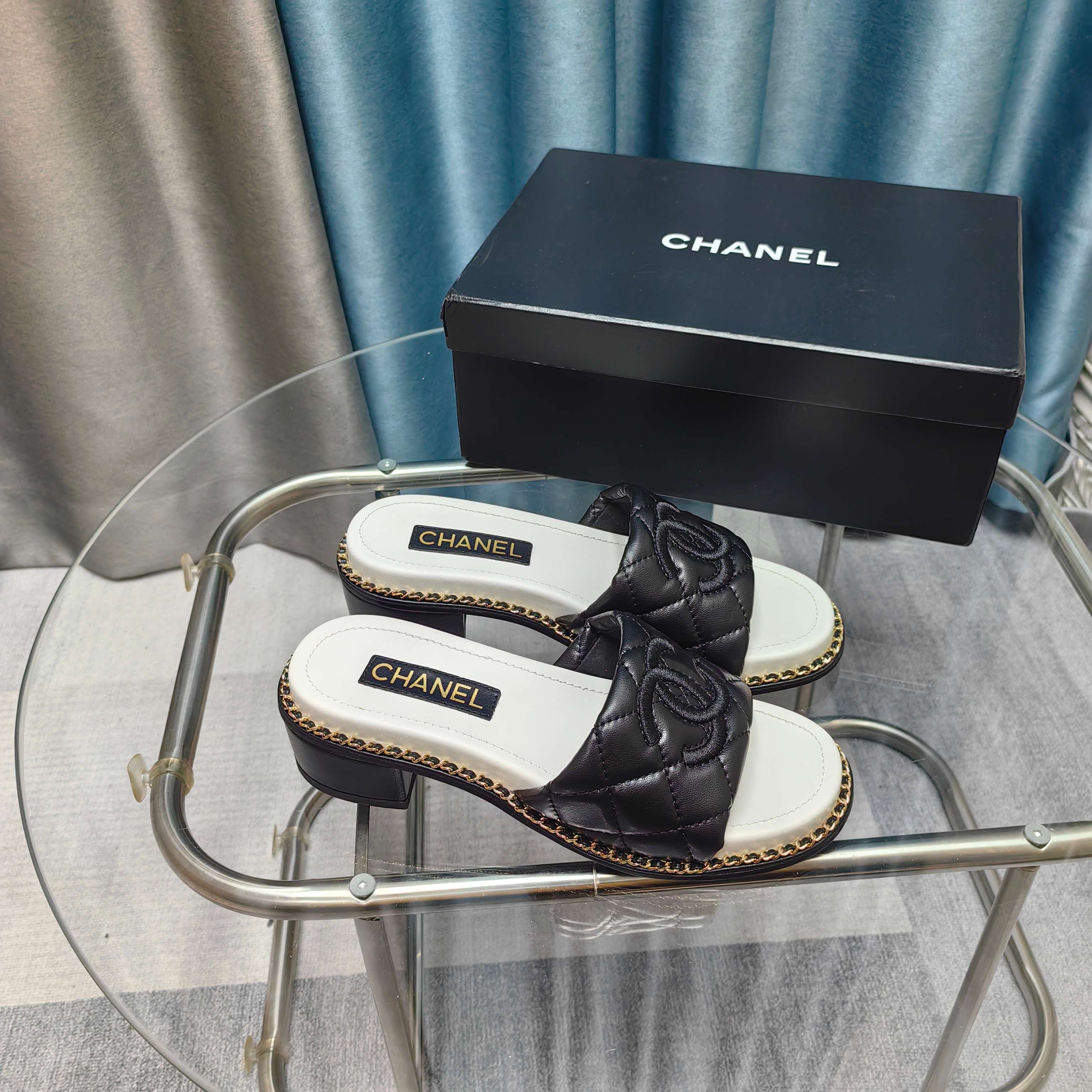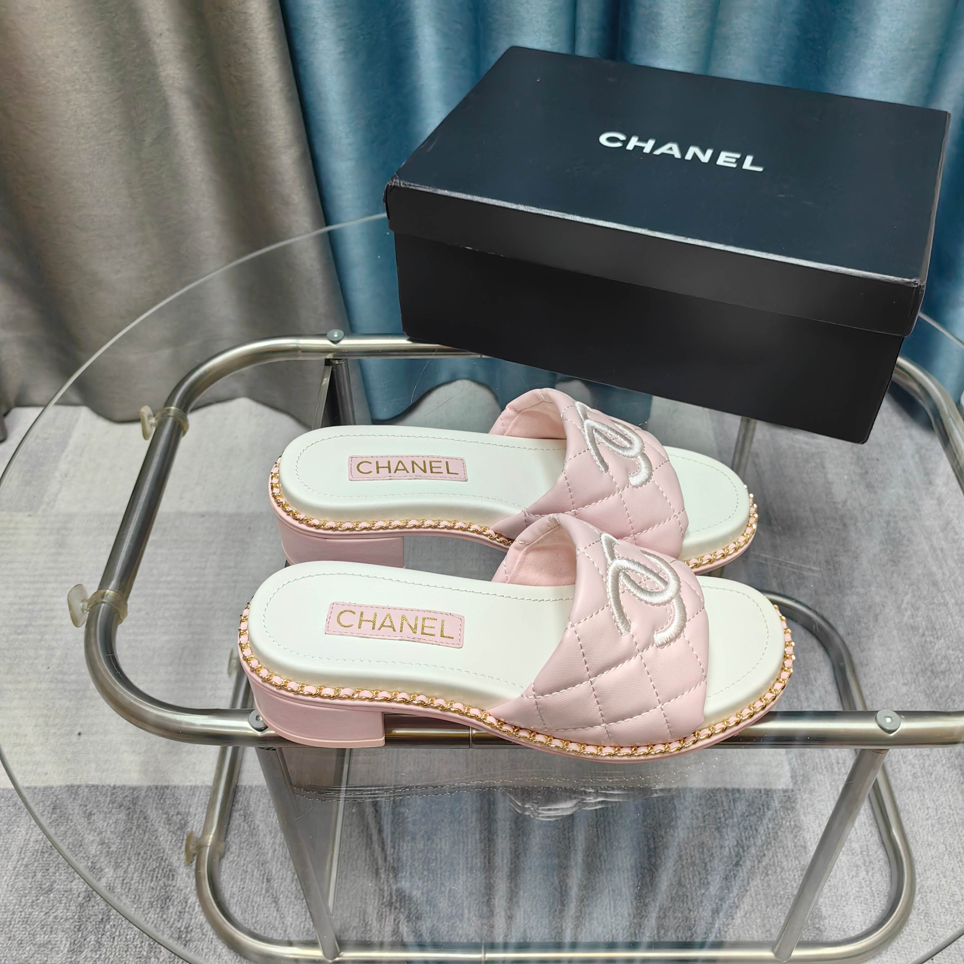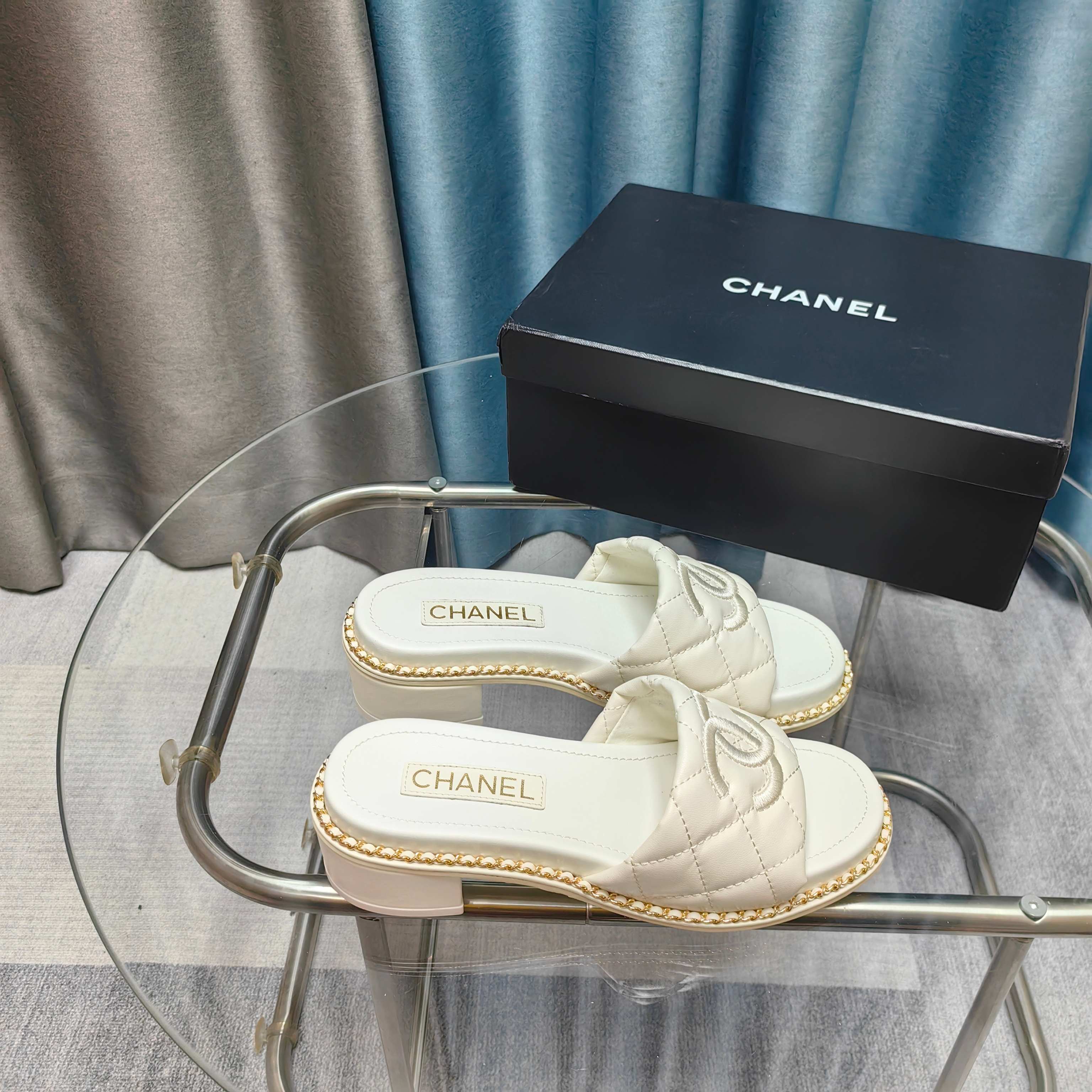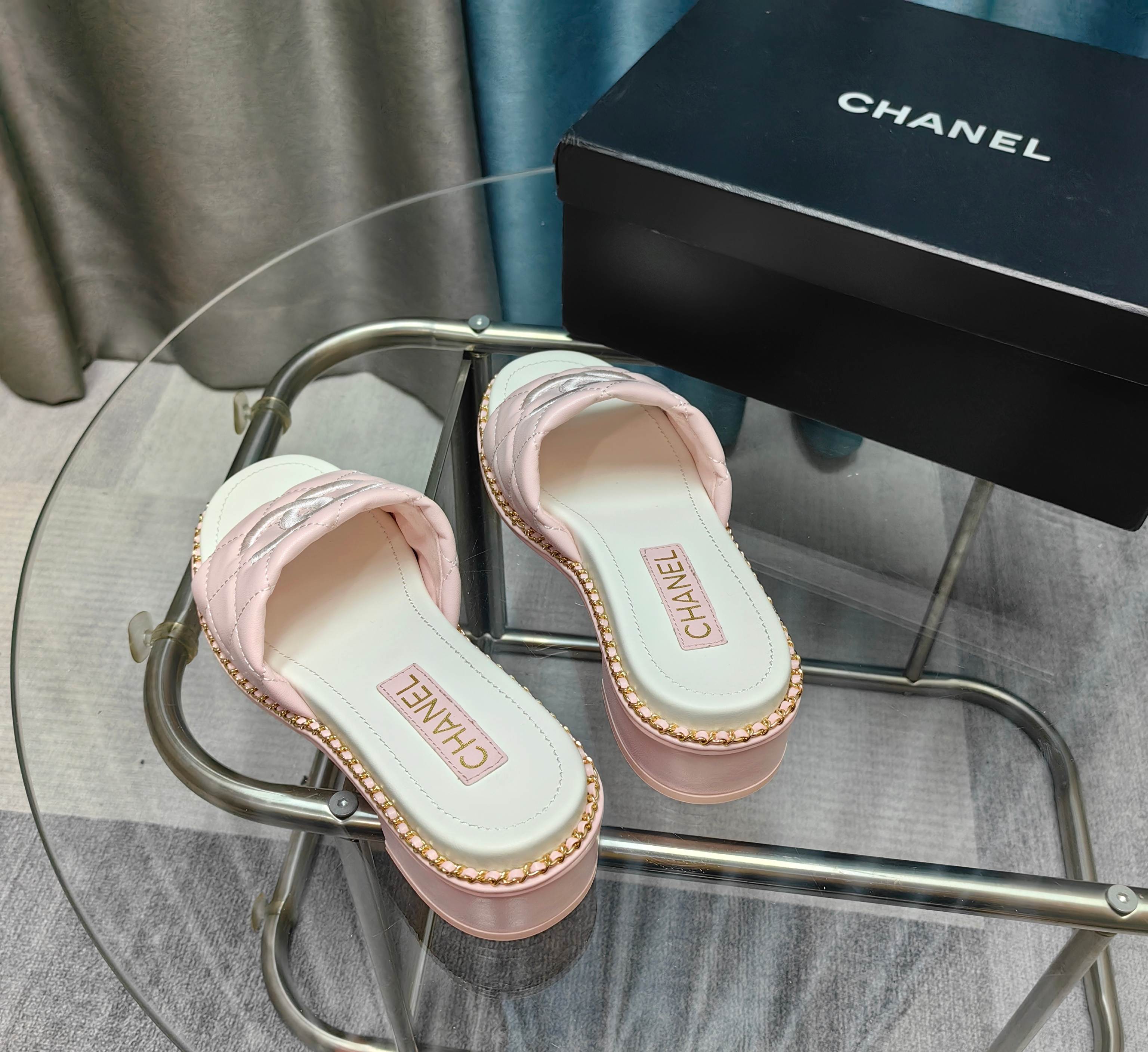 CC 25 Sandal 5cm Quilted Calfskin Leather Chain