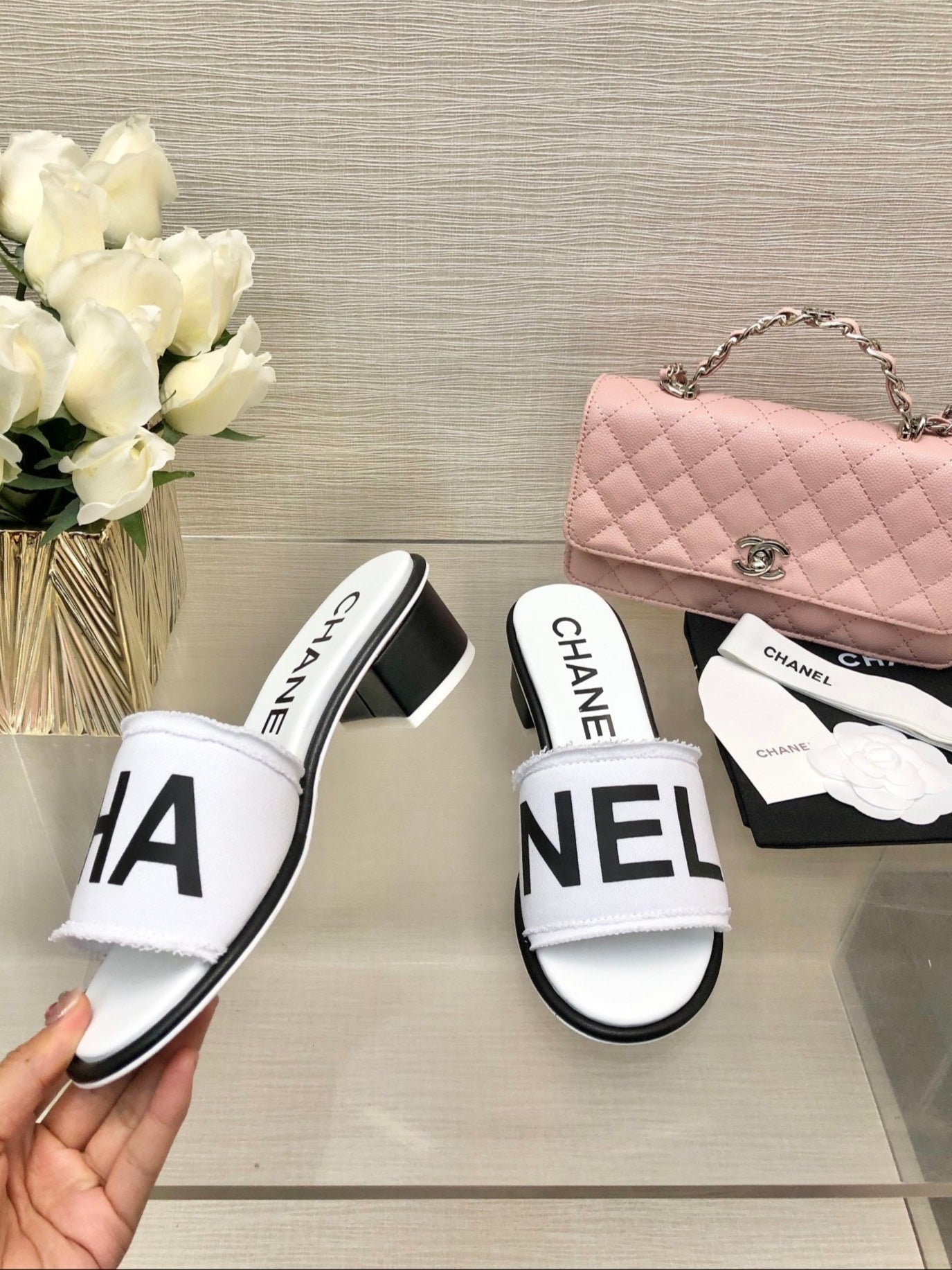 CC 25C Mid Heel Mule White Fabric Material 212959