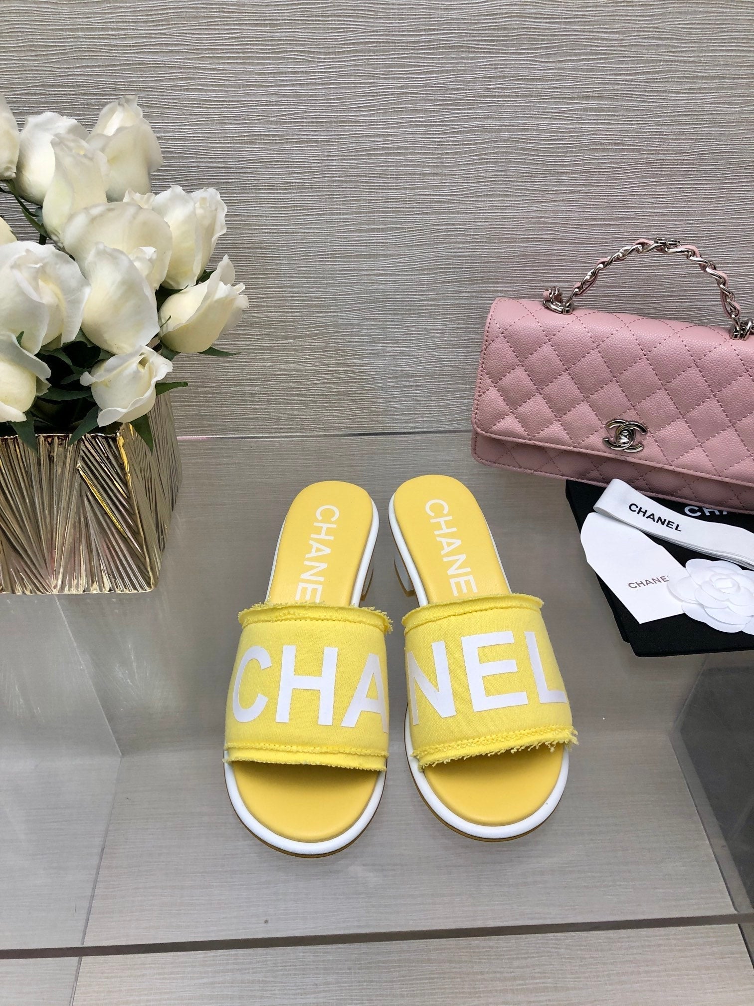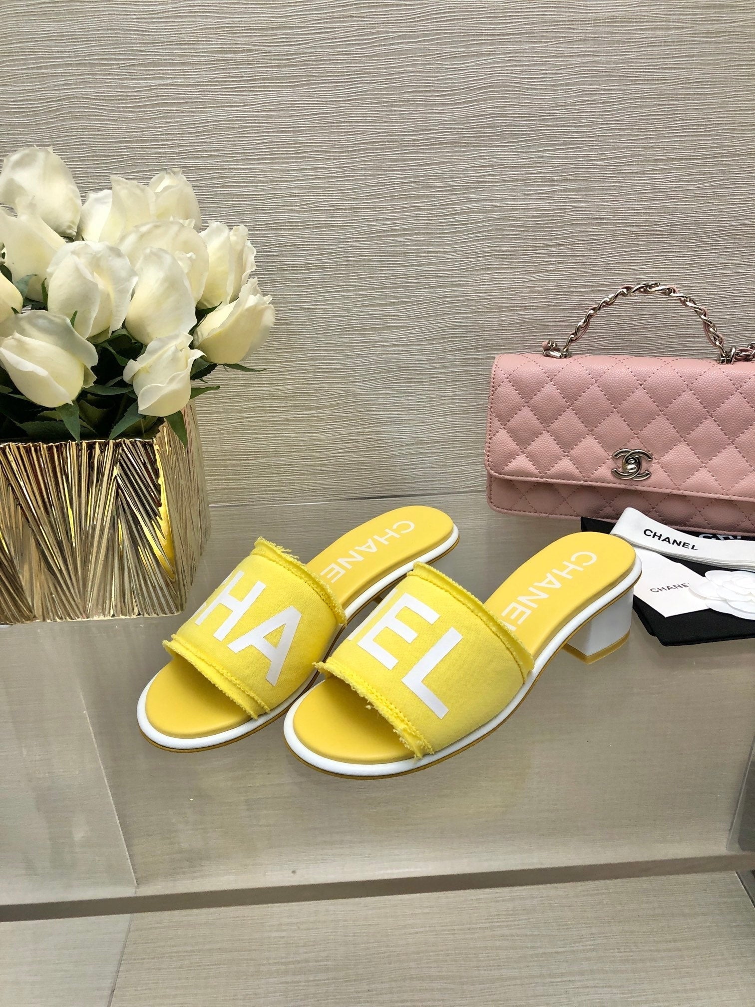 CC 25C Mid Heel Mule Yellow Fabric Material 212958