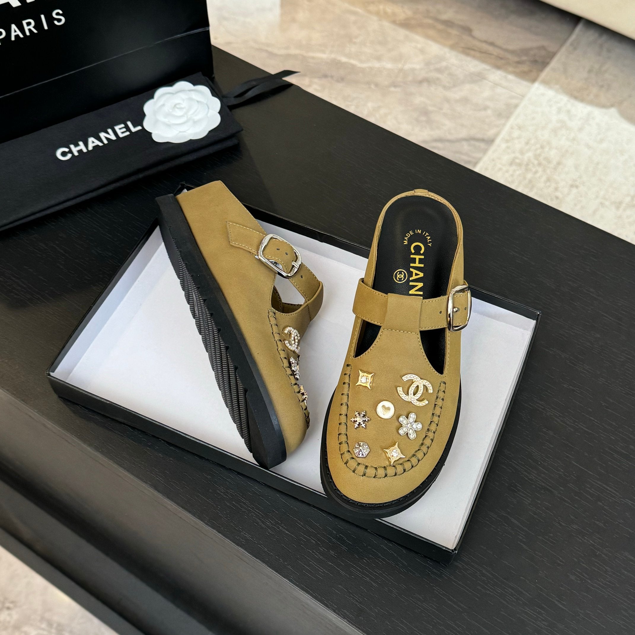 CC 25C Mule Sandal Dried Moss Imported Cowhide 212945
