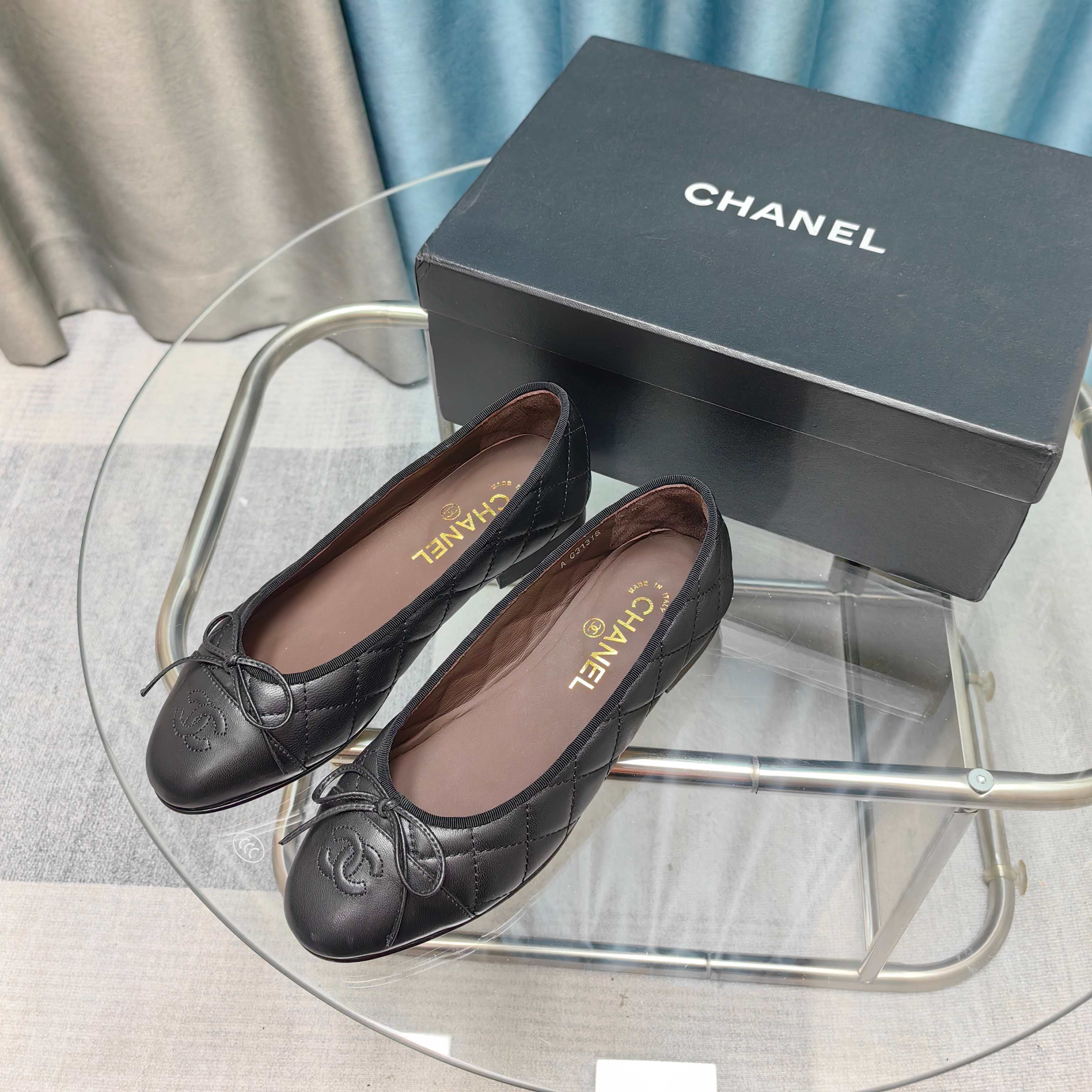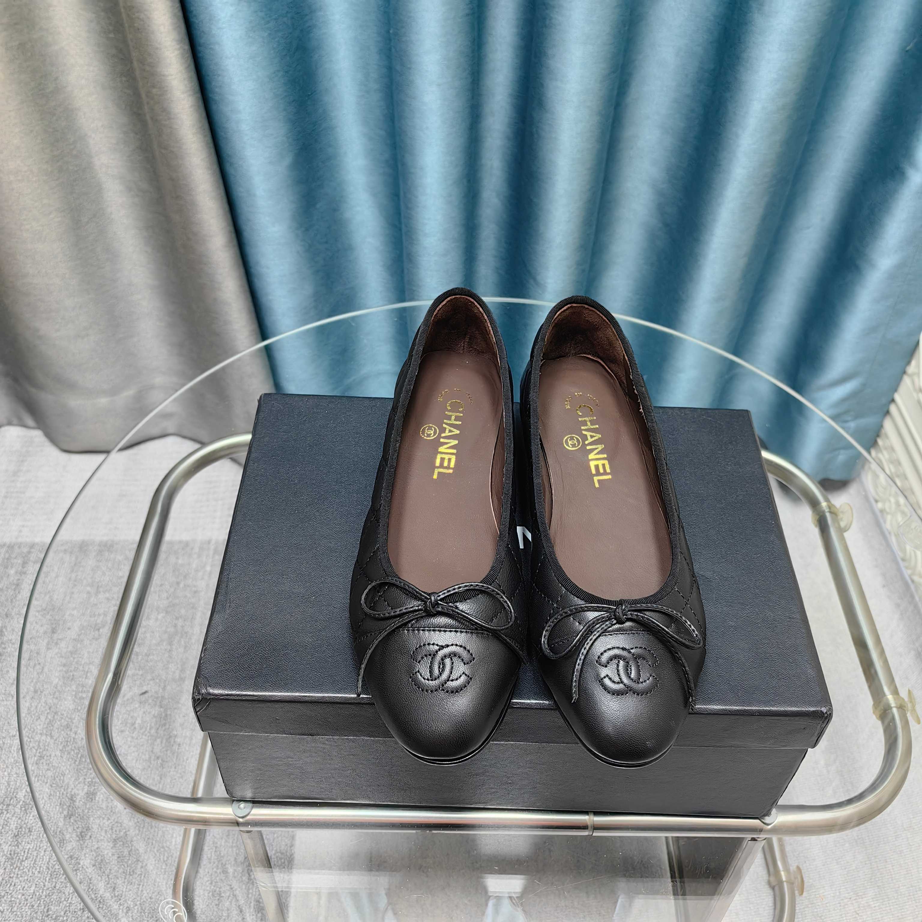 CC 25P Ballet Flat Black Chocolate Calfskin