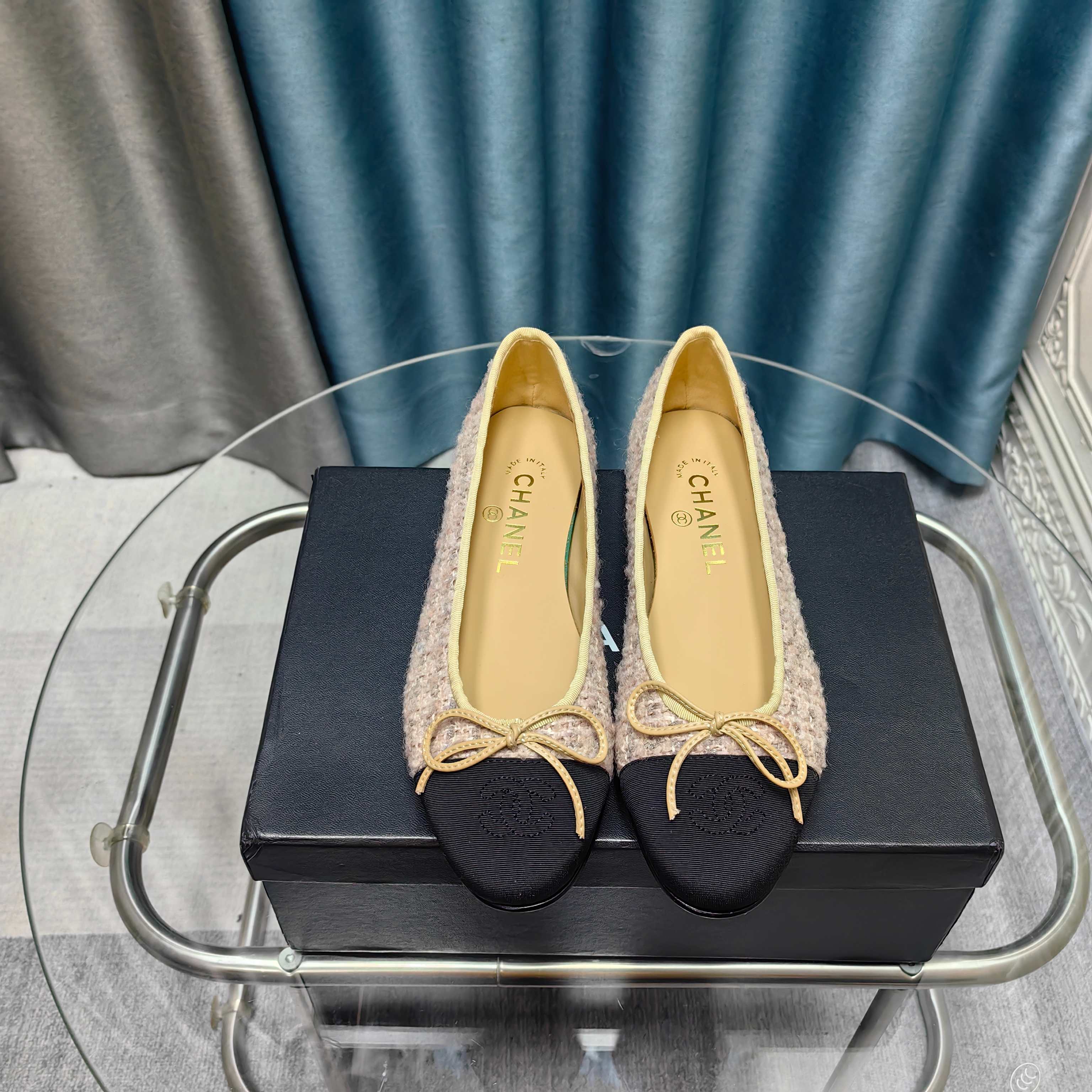 CC 25P Ballet Flat Light Pink Tweed Black Grosgrain