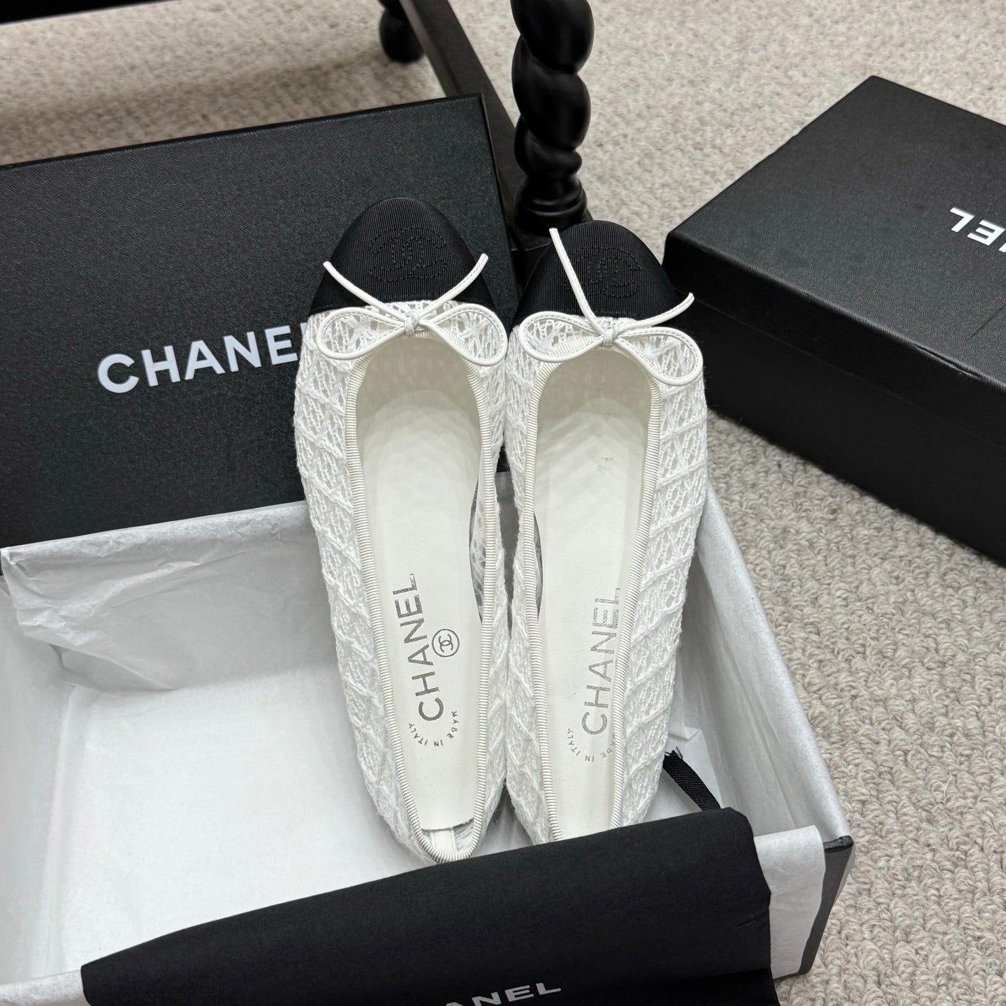 CC 25p Ballet Flat White Cotton Mesh Fabric Grosgrain