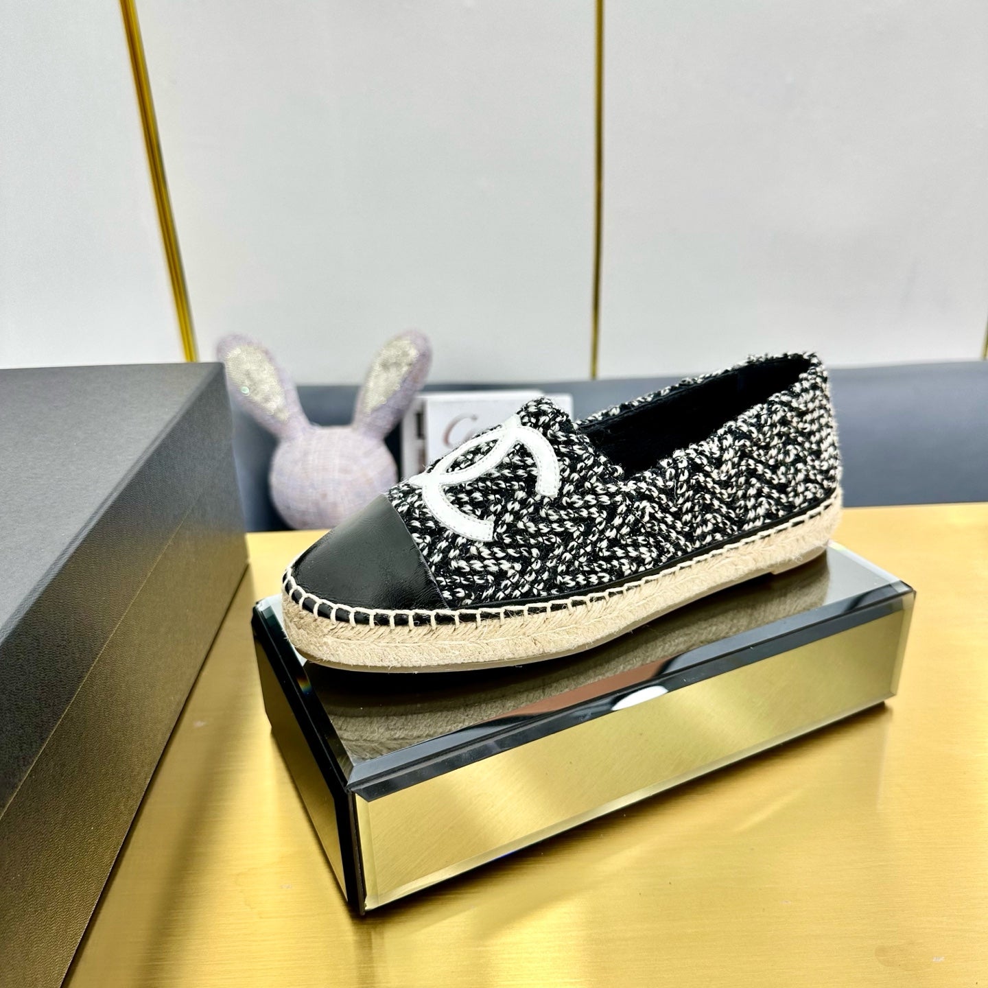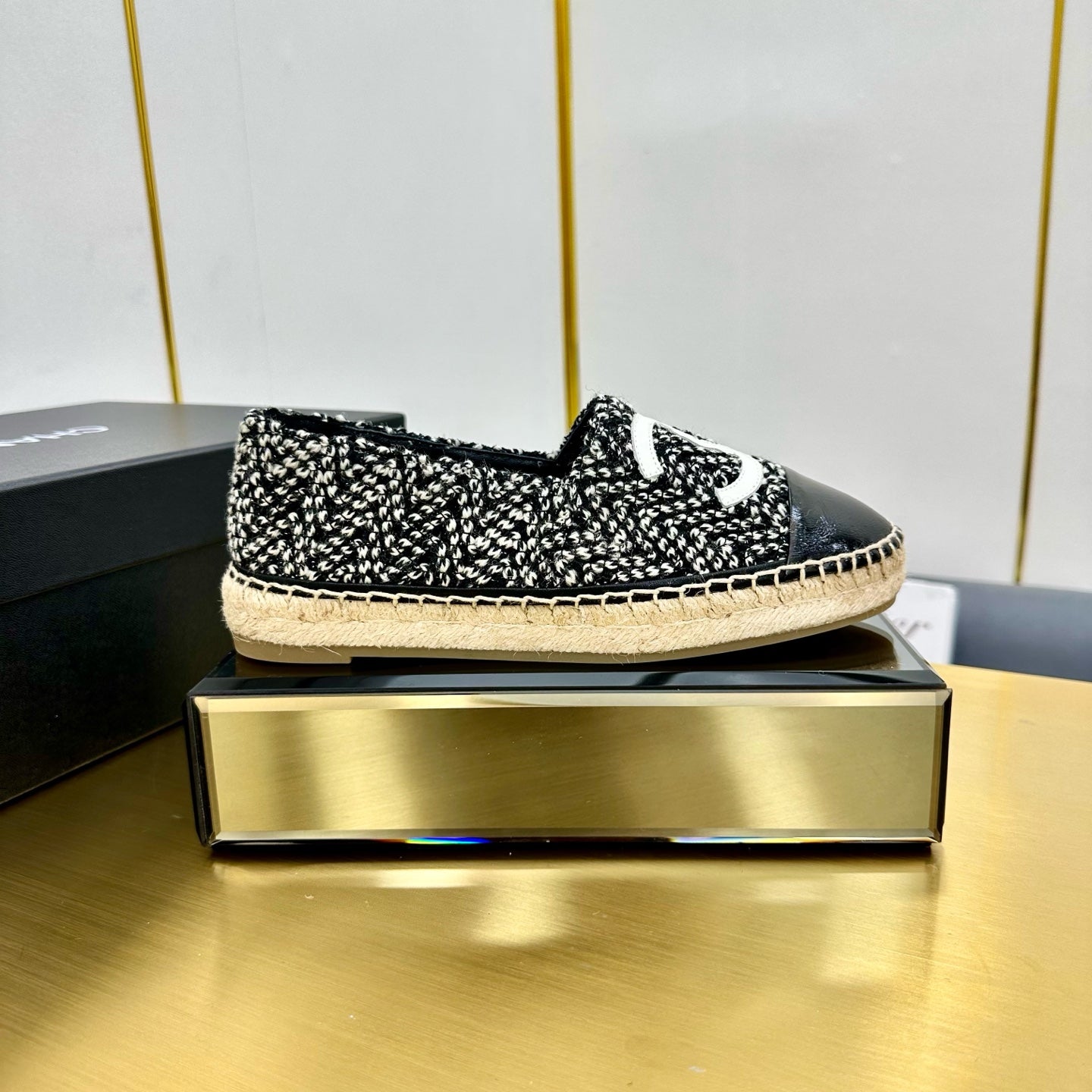 CC 25s Slip–on Espadrilles Black/White Wool 297818