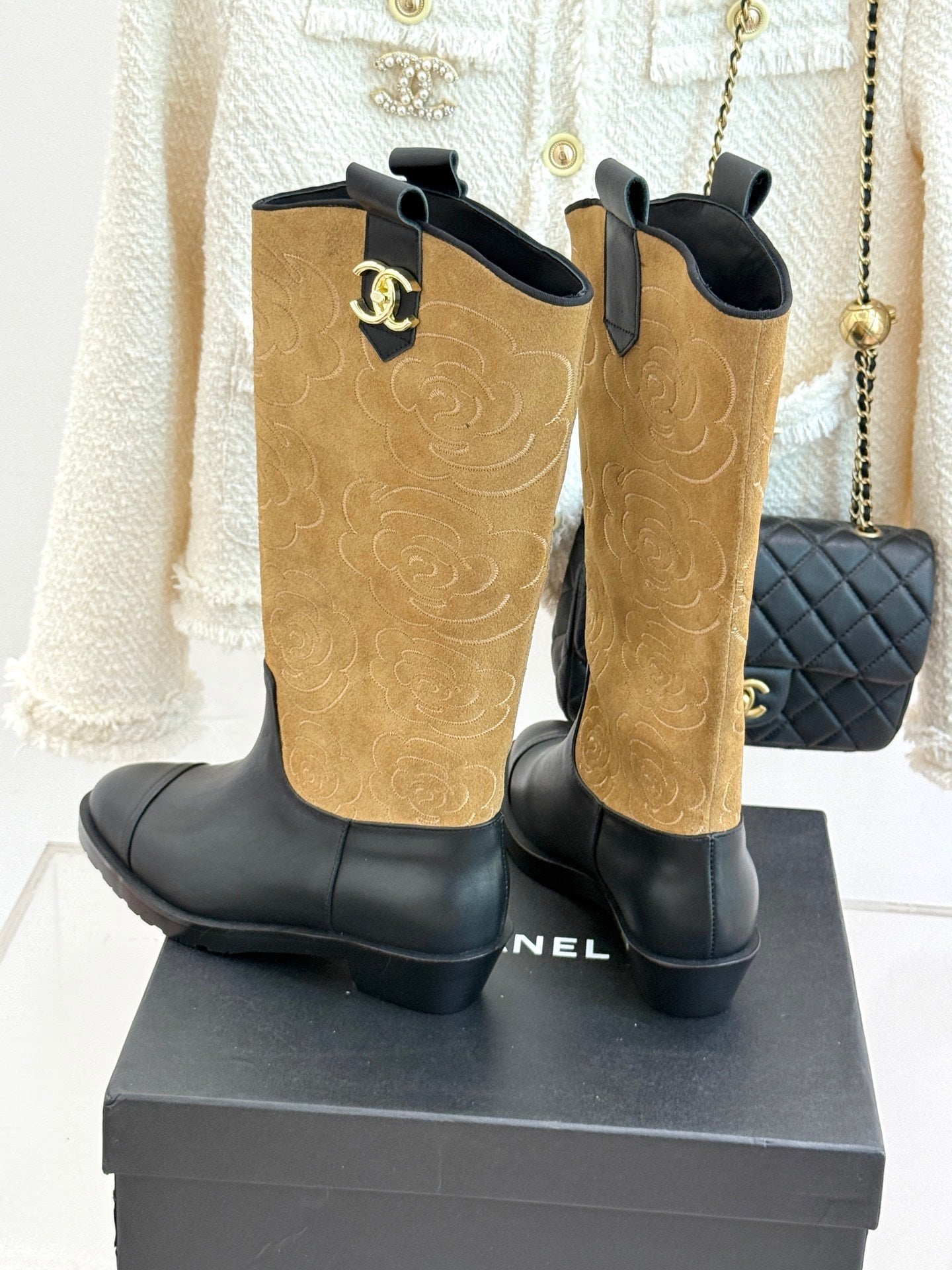 CC cowboy mid-calf boots black brown sheepskin suede 511983