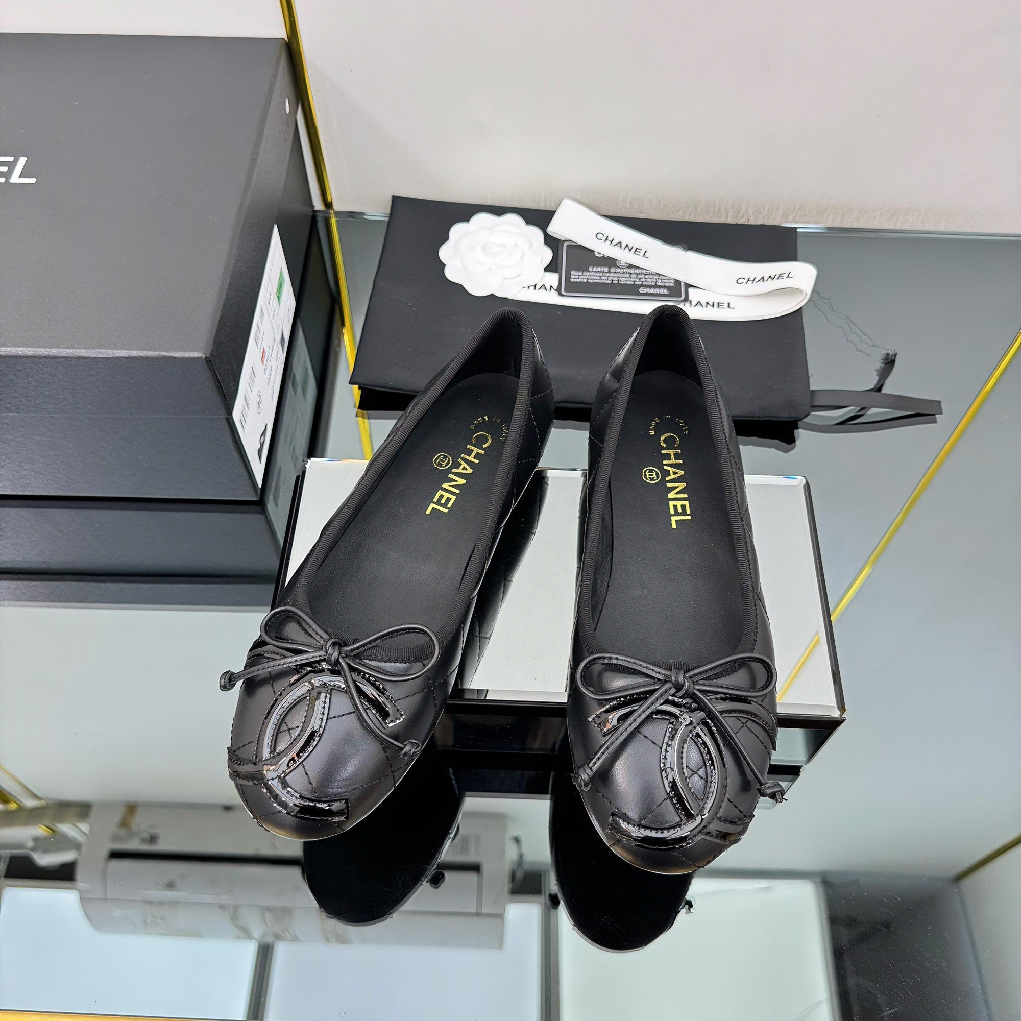 CC Loafers Black Sheepskin Mix Bow 297795