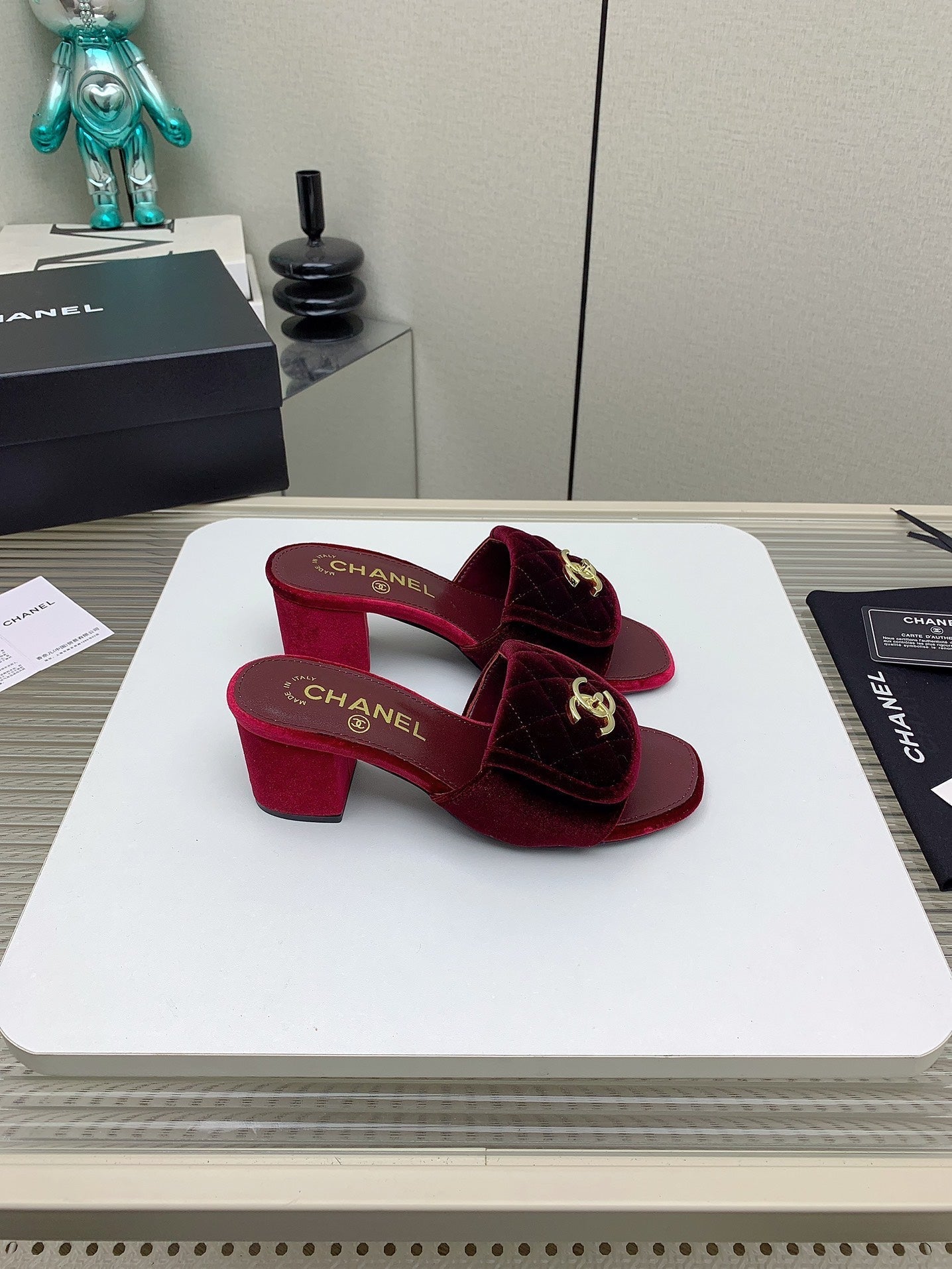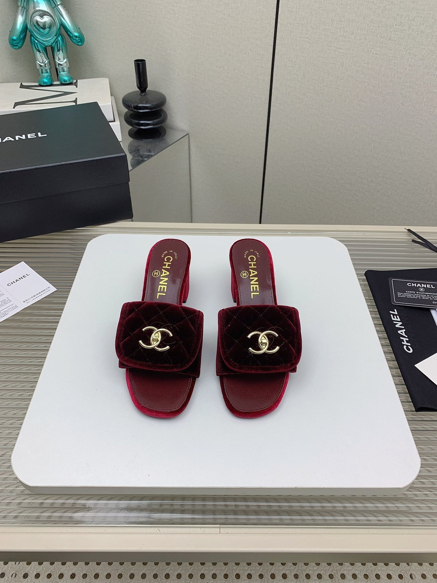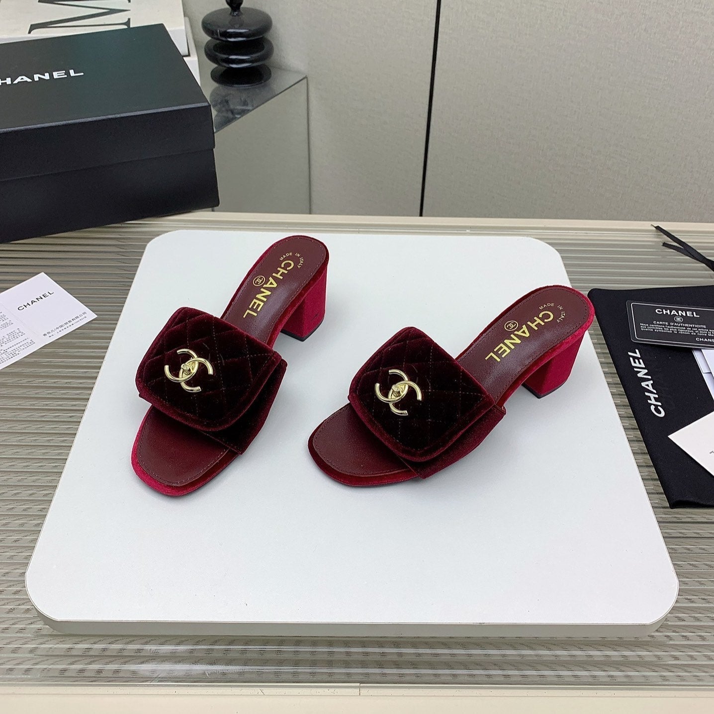 CC Mule Sandals 50mm In Drak Red Velvet 148939