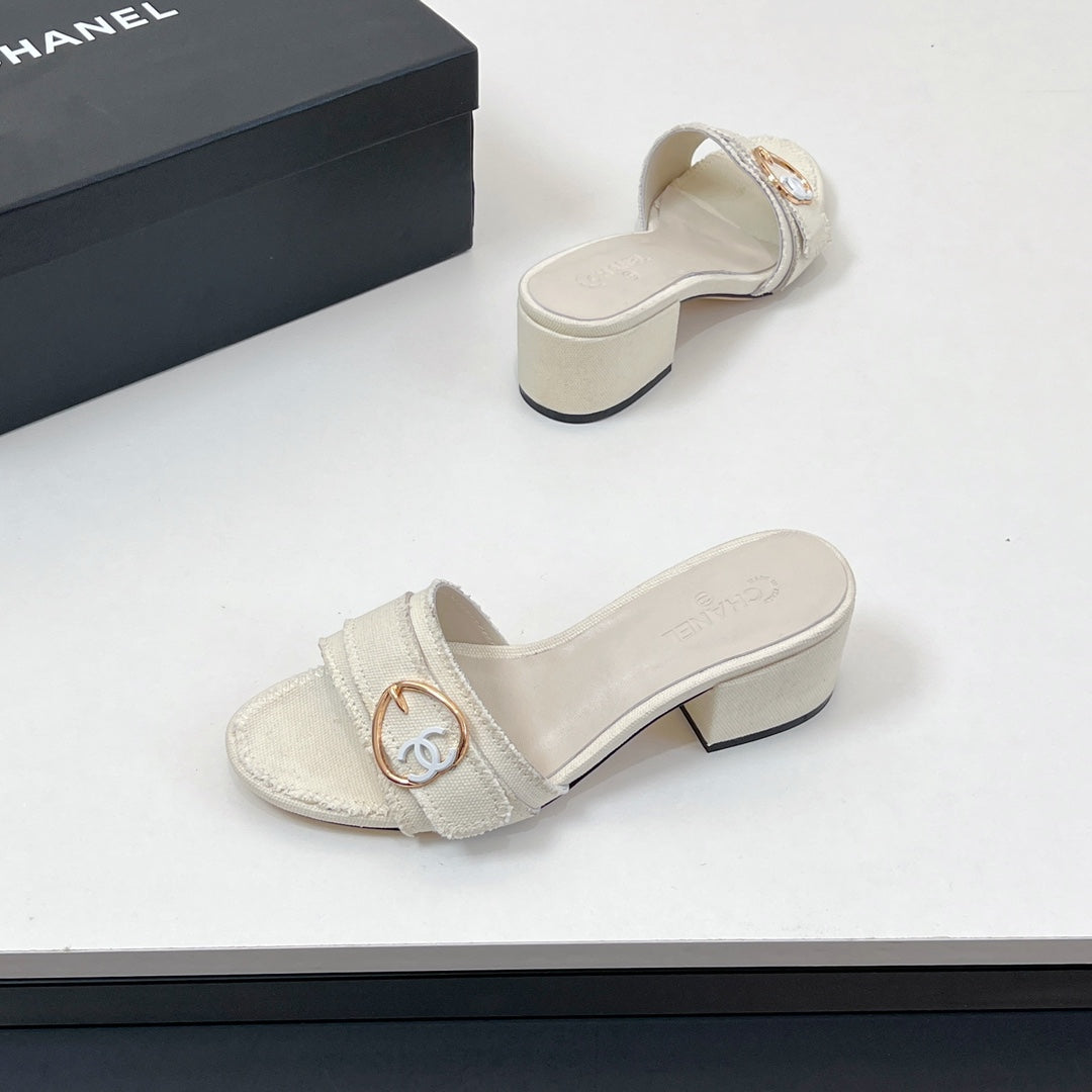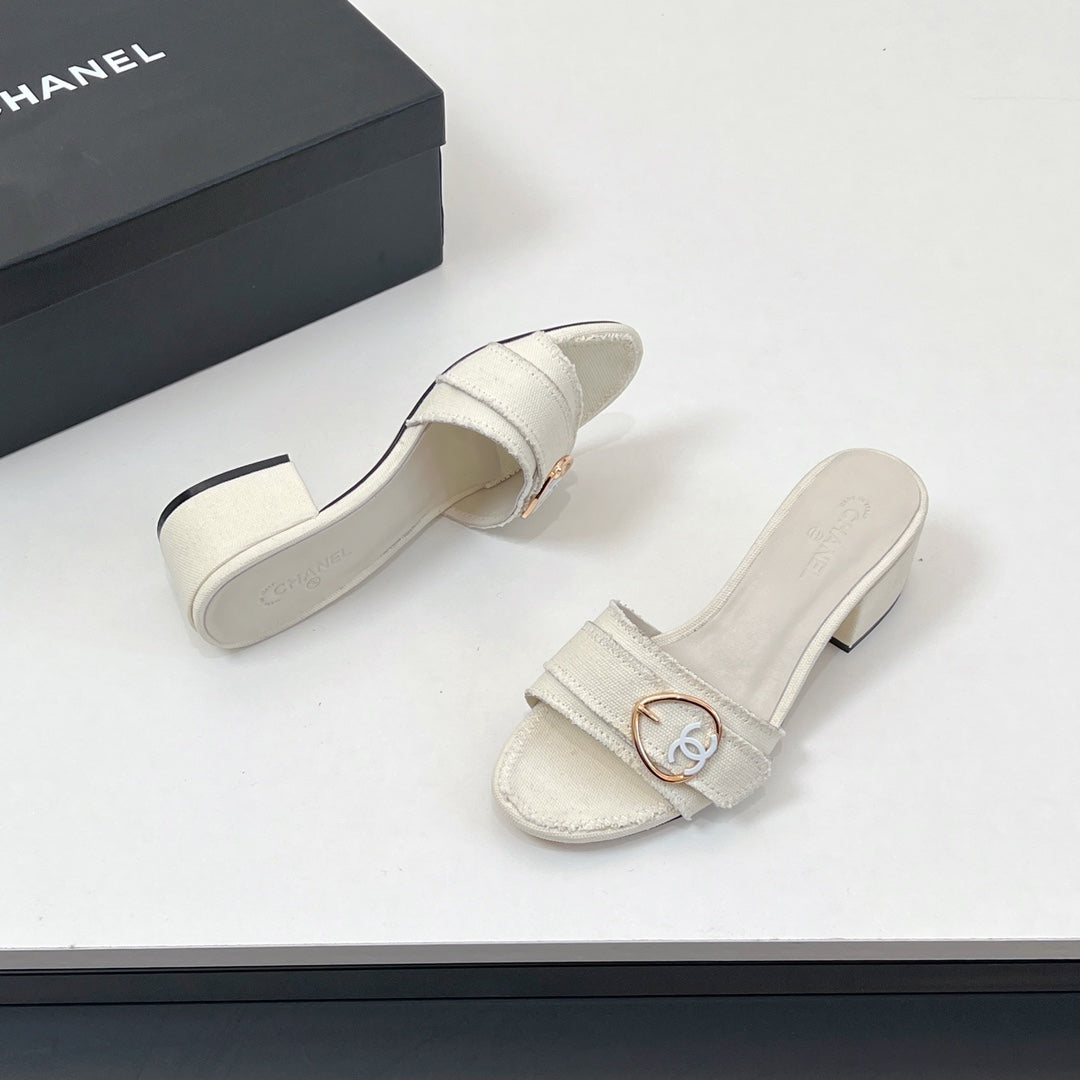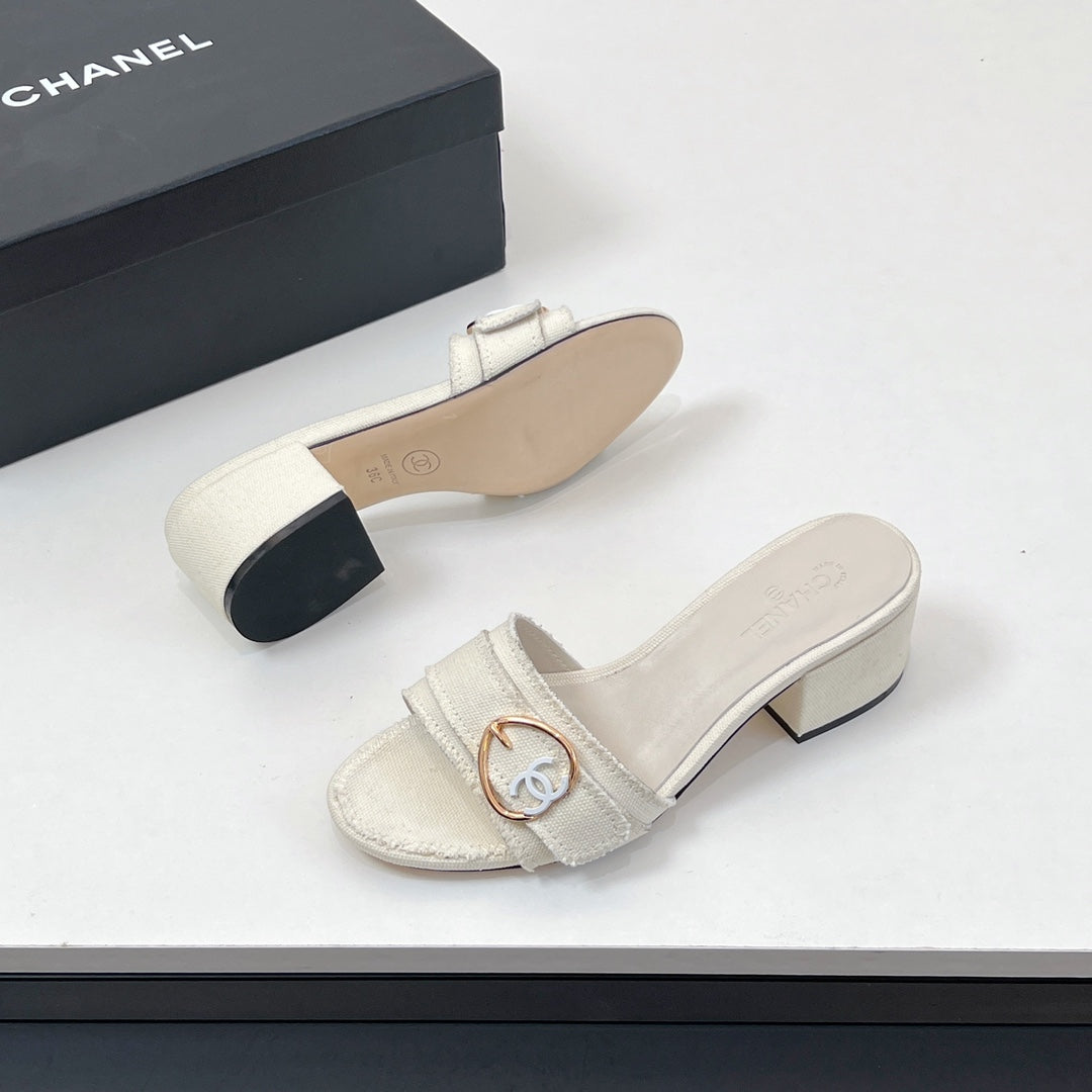 CC Mule Sandals In White Canvas Fabric 149437
