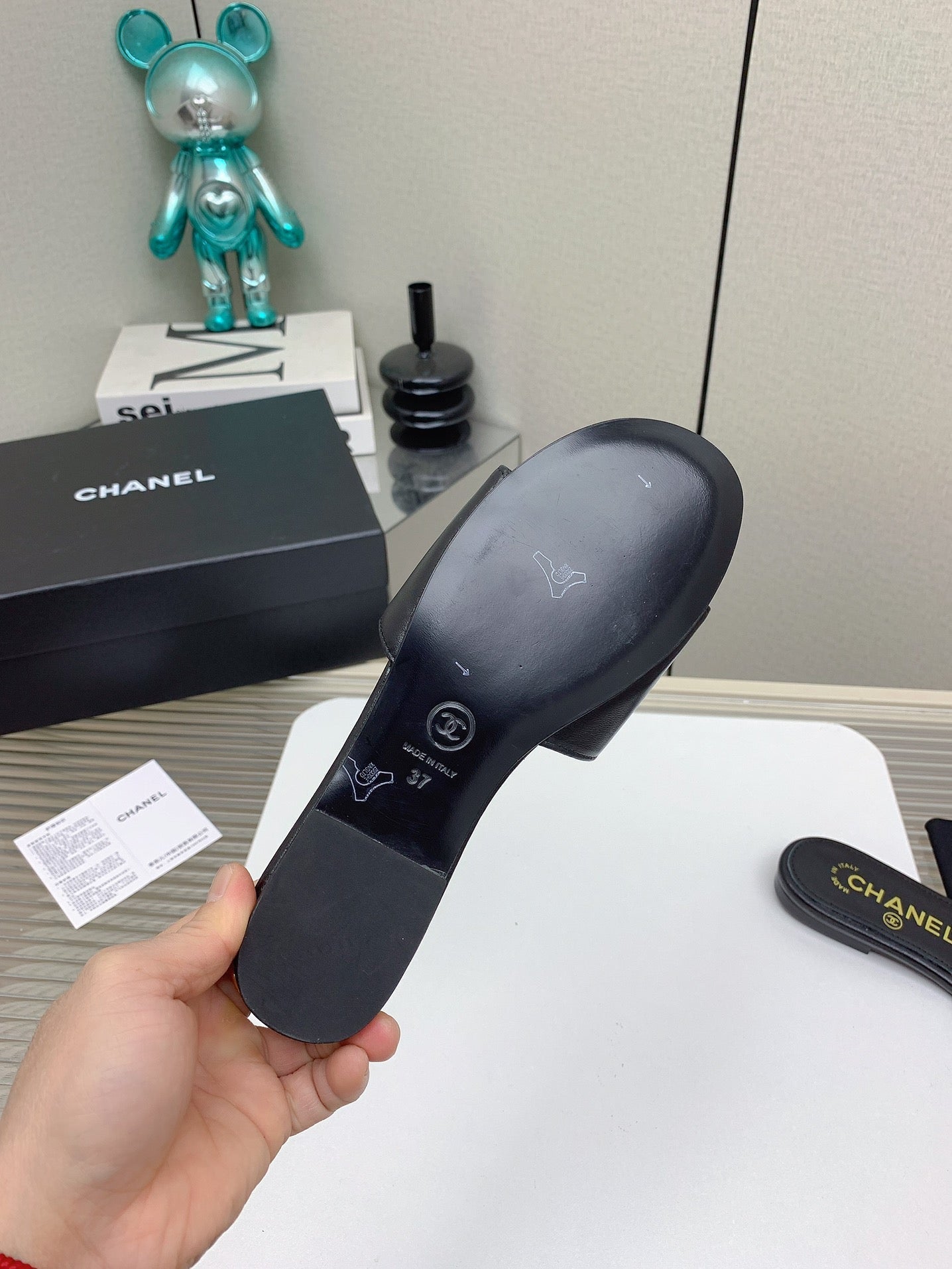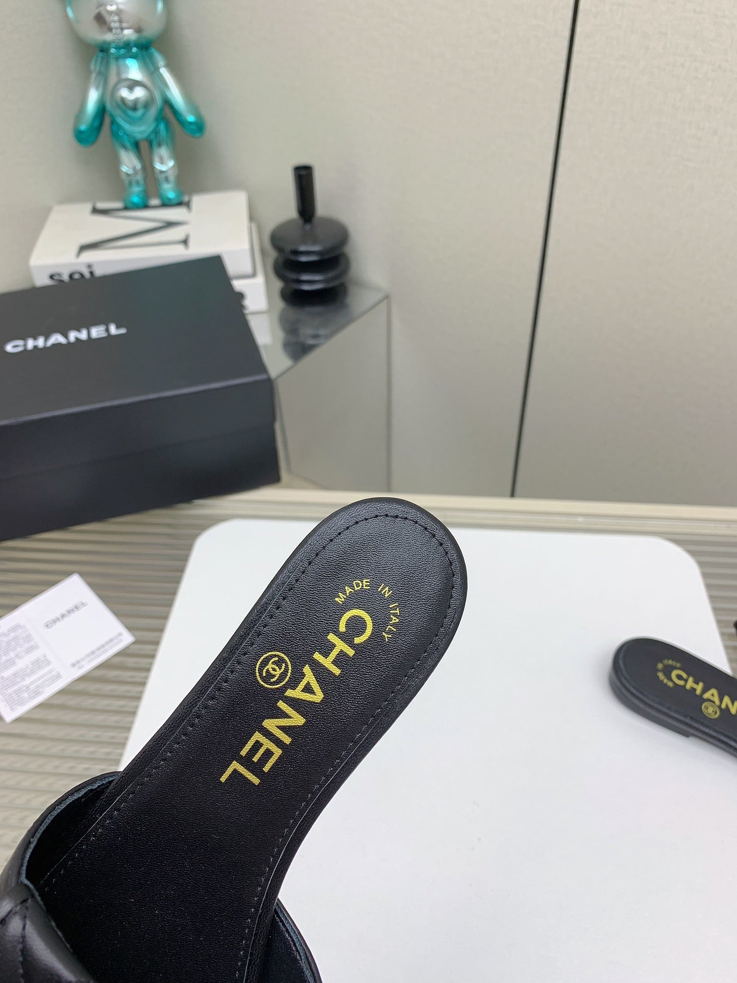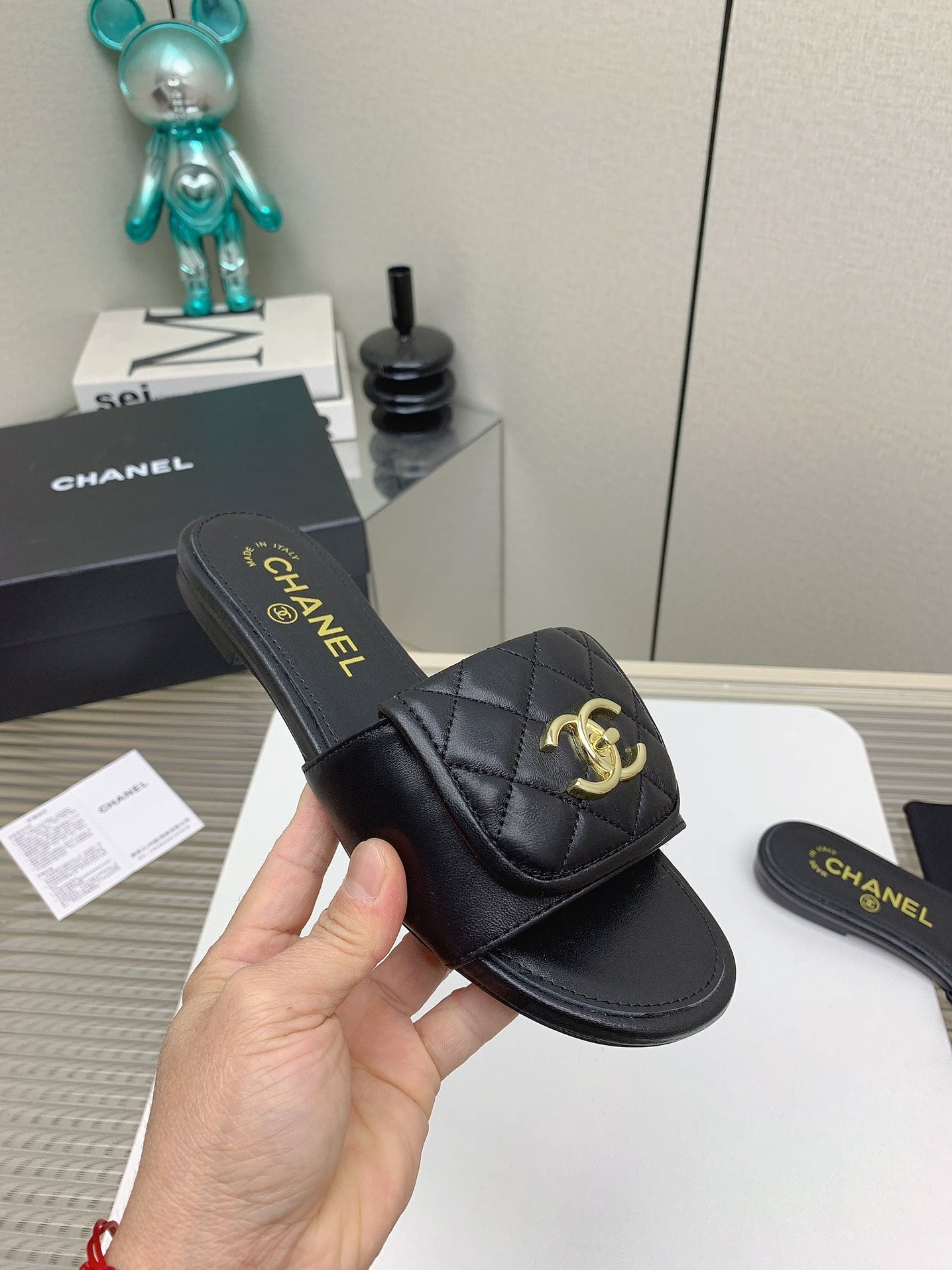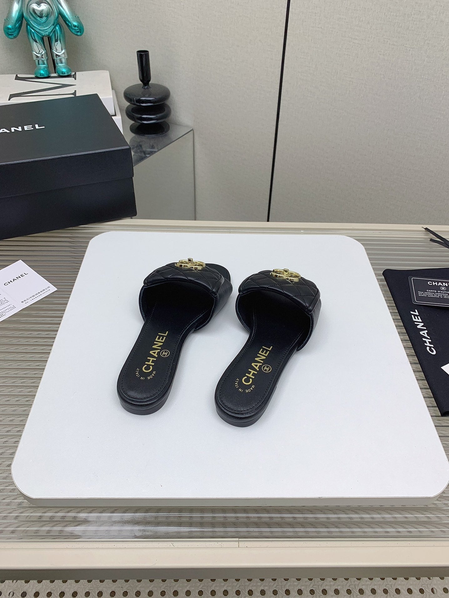 CC Slippers In Black Quilted Lambskin 148959