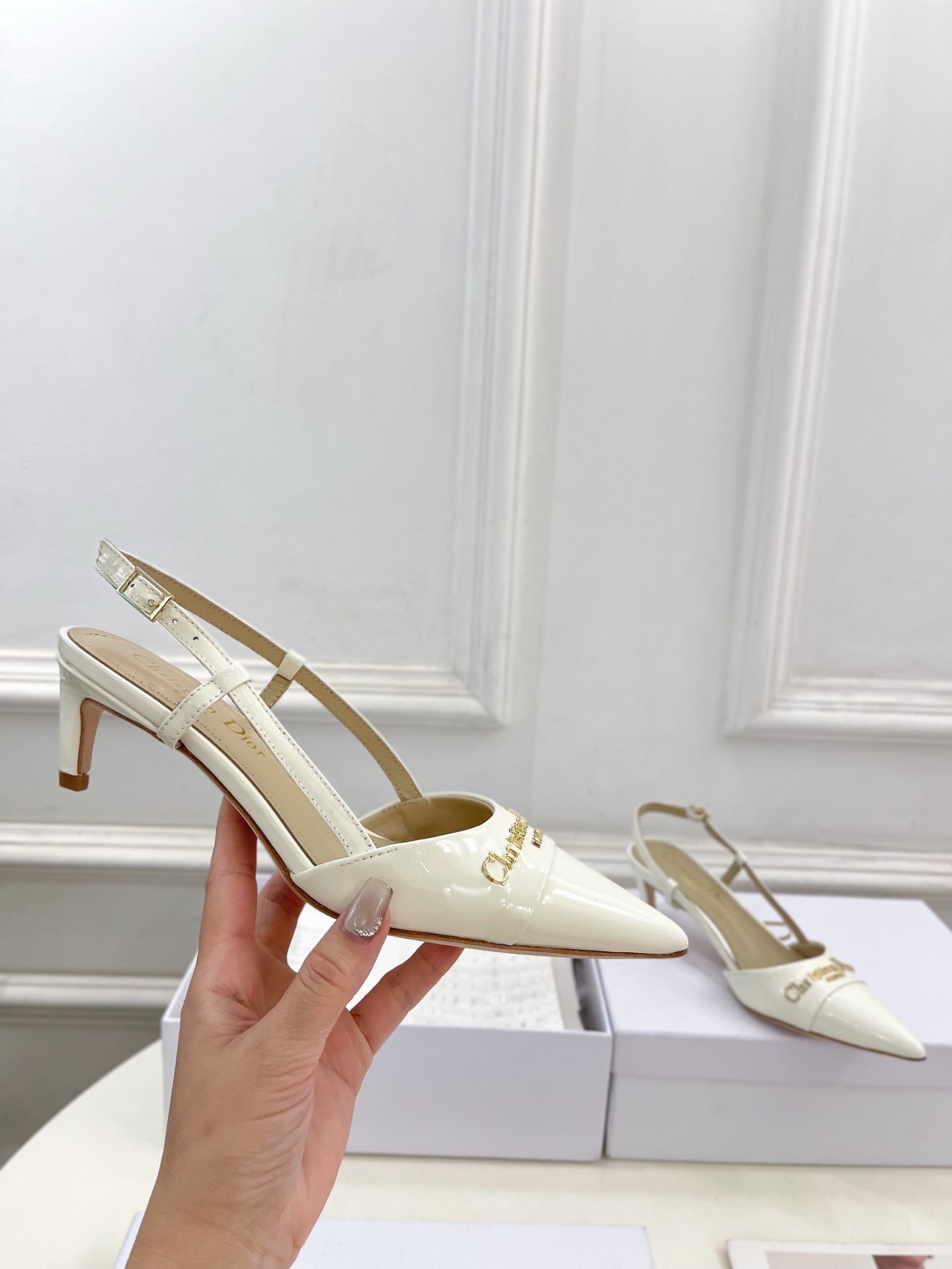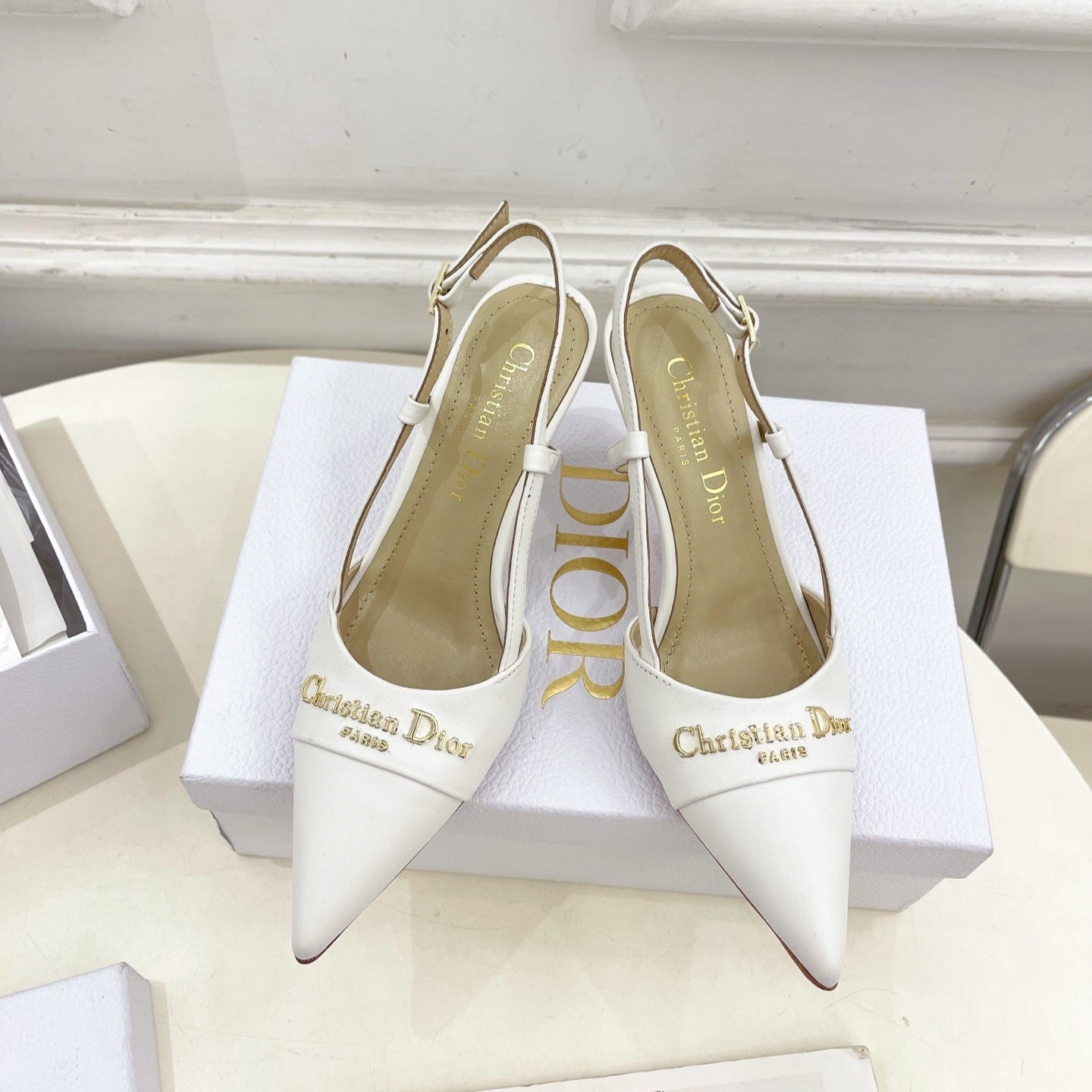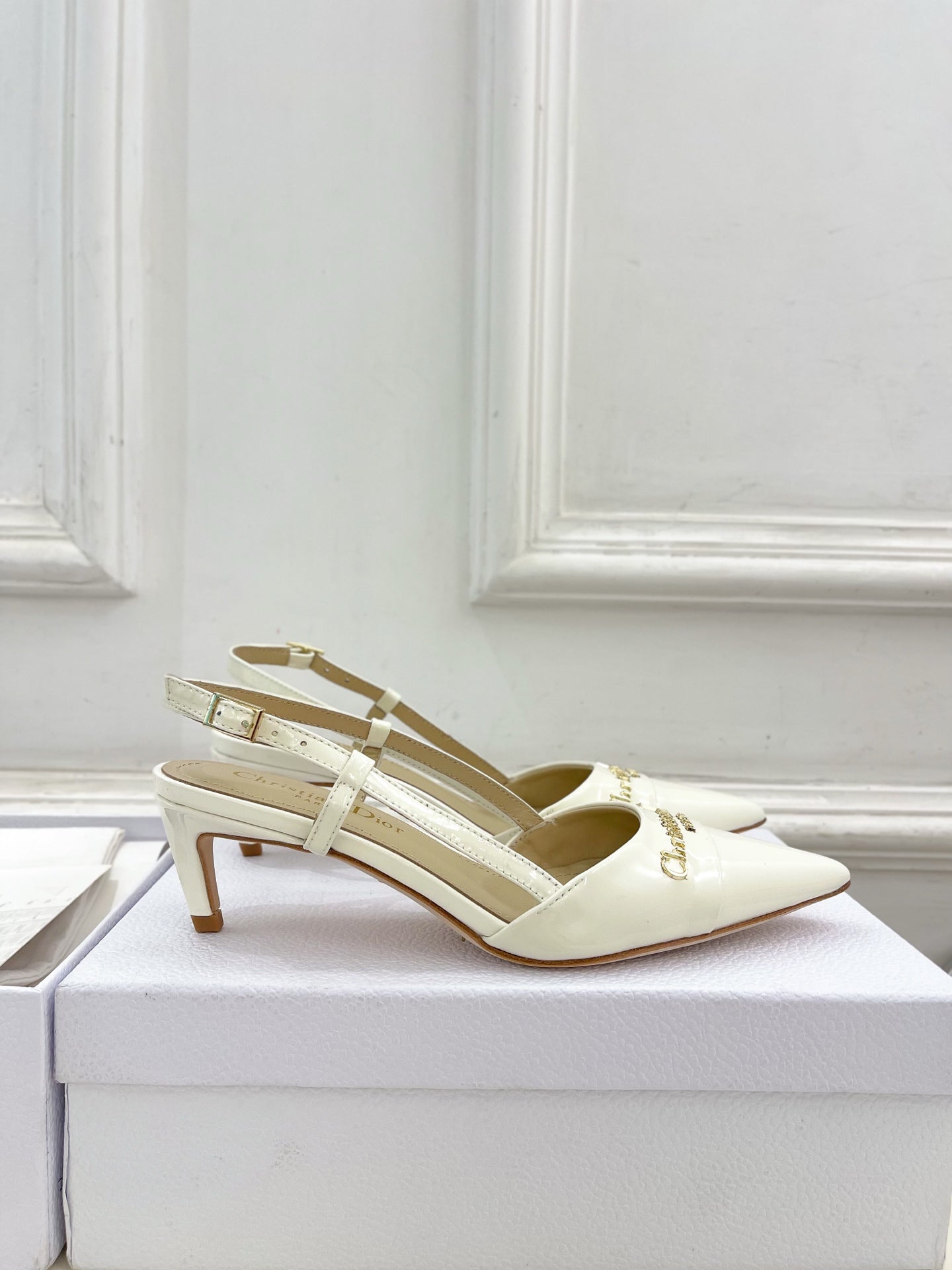 CD 25 Slingback Heel White Calfskin 307432
