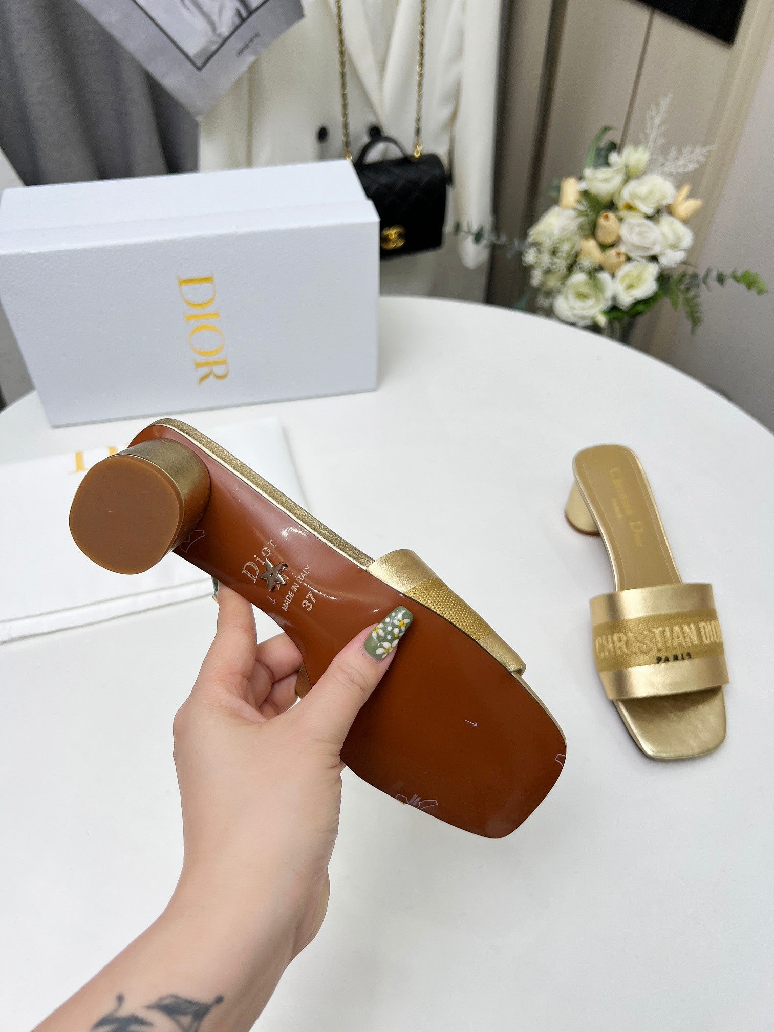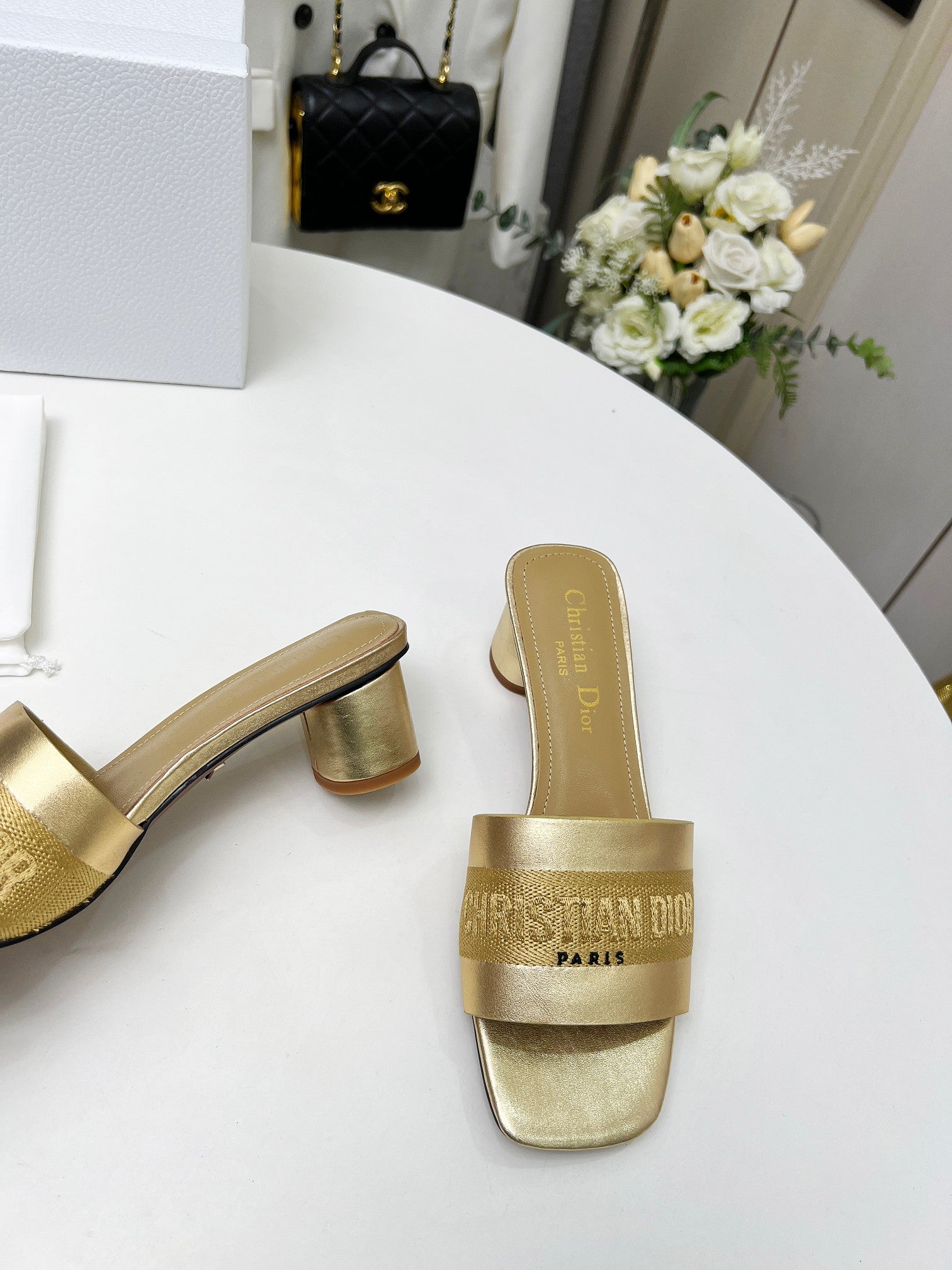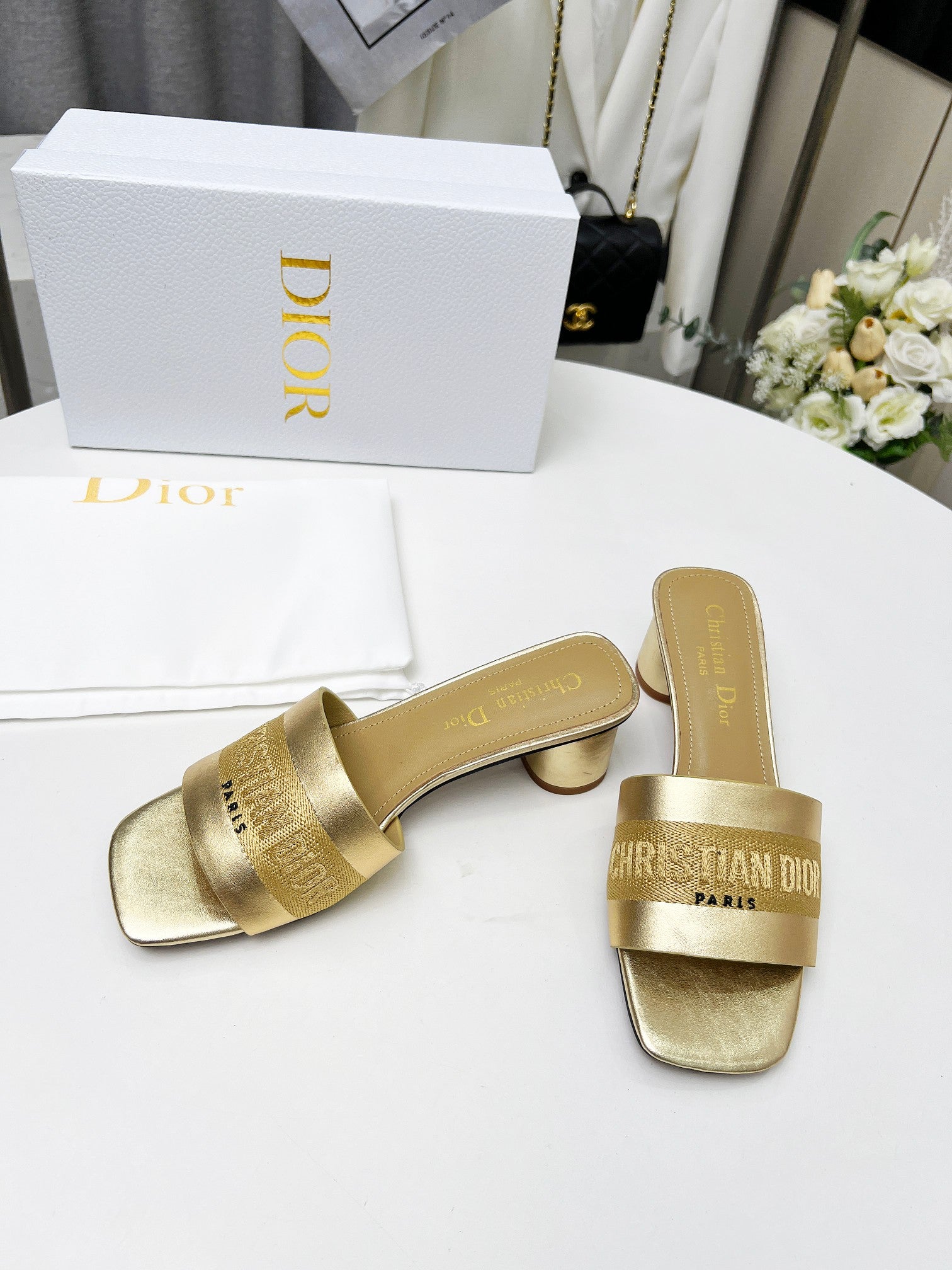 cd dway 45 gold-tone canvas calfskin