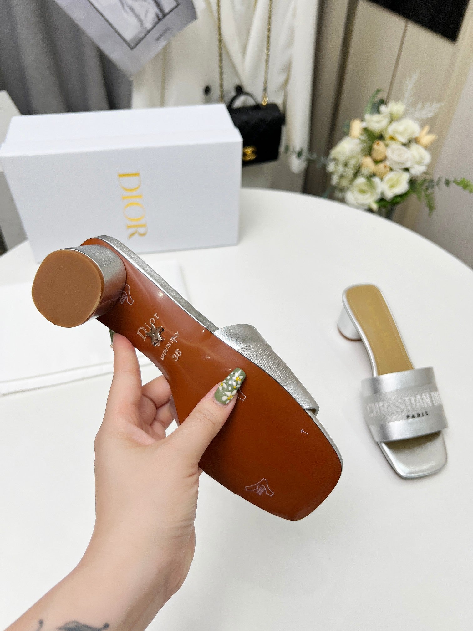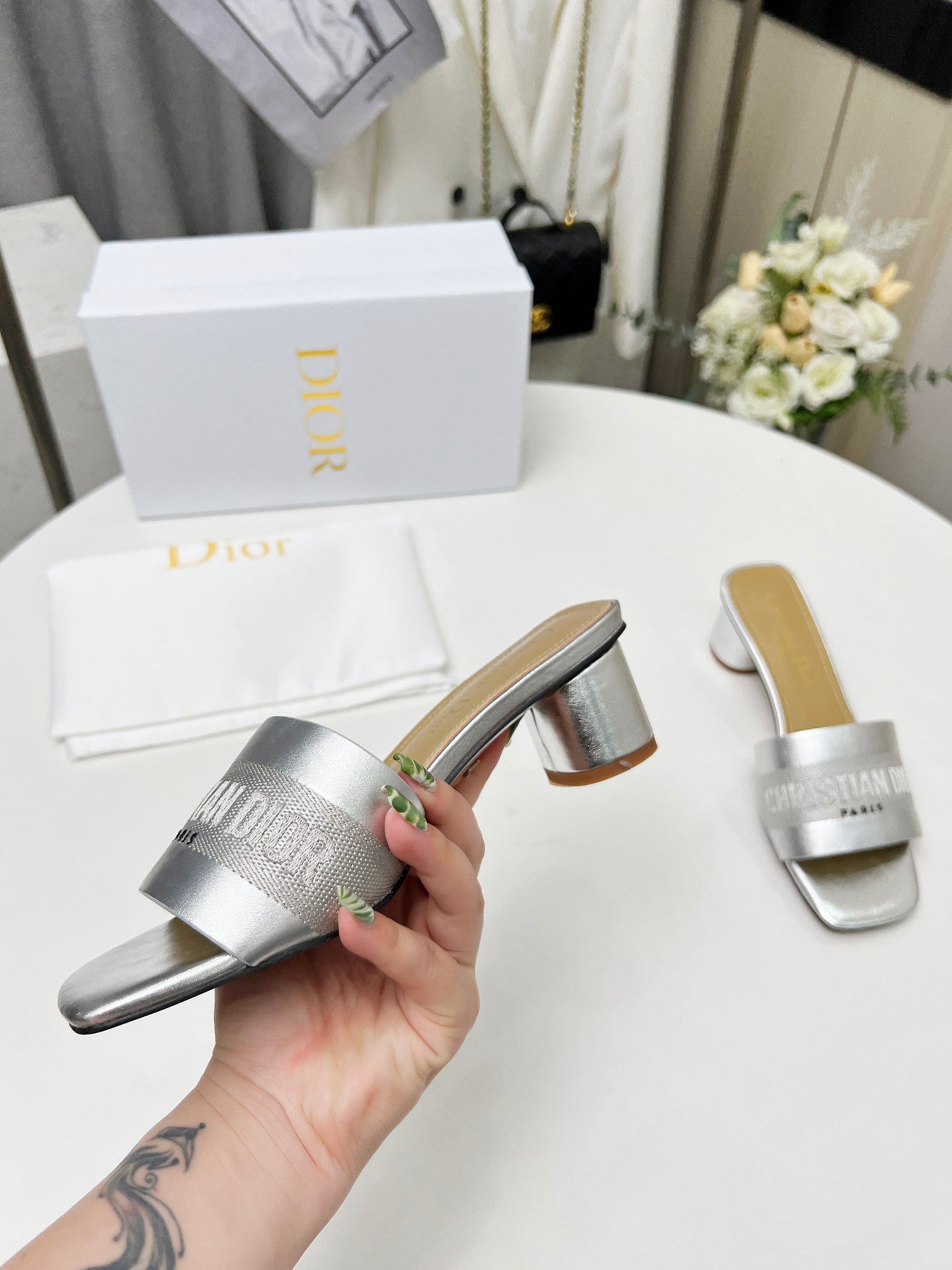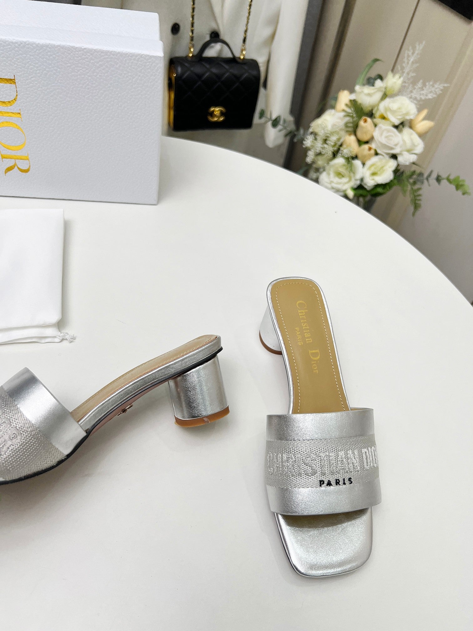 cd dway 45 silver-tone canvas calfskin